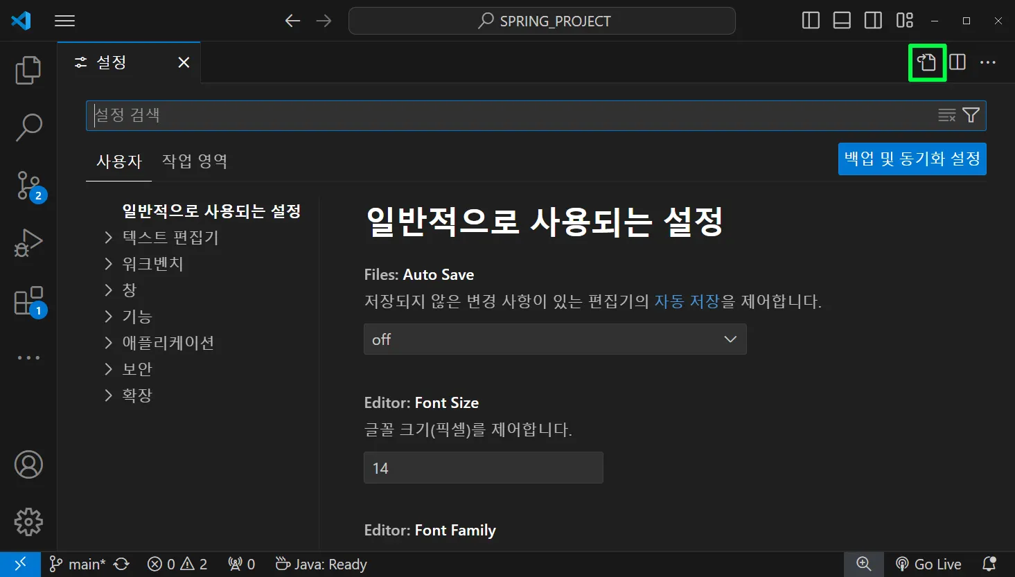 [ํ์ผ] > [๊ธฐ๋ณธ ์ค์ ] > [์ค์ ]