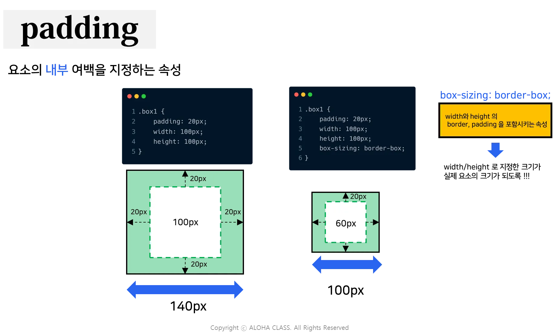 κΈ°λ³Έμ μΌλ‘ paddingμ λ°μ€ λͺ¨λΈμμ μμμ ν¬κΈ°λ₯Ό νμ₯μν΅λλ€. μ¦, μ§μ λ widthμ padding κ°μ΄ λν΄μ Έμ μ΅μ’