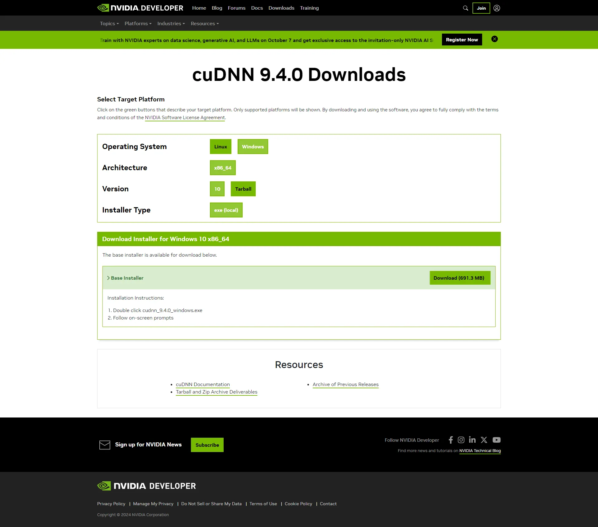 NVIDIA cuDNN Compatibility Matrix๋ฅผ ์ฐธ์กฐํ์ฌ ํธํ์ฑ์ ํ์ธํ์ธ์.