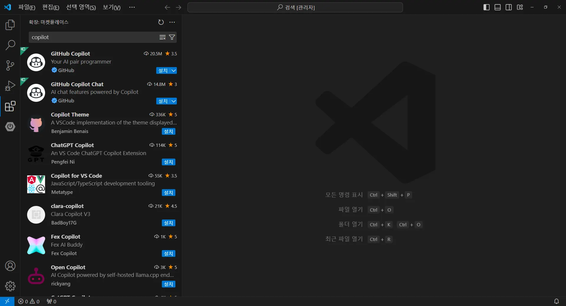 VSCodeμμ Copilotμ μ€μΉνλ λ°©λ²μ λ€μκ³Ό κ°μ΅λλ€:
