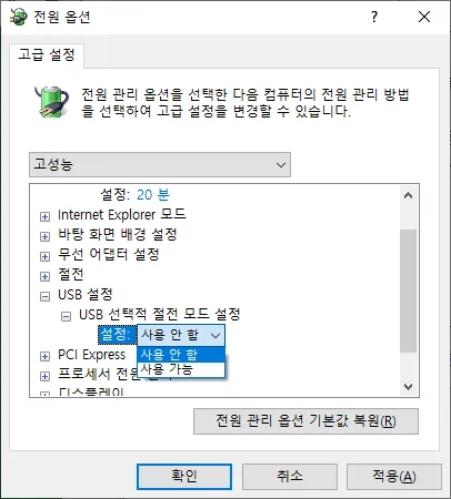 USB μ νμ μ μ λͺ¨λ μ€μ : μ¬μ© μν¨
