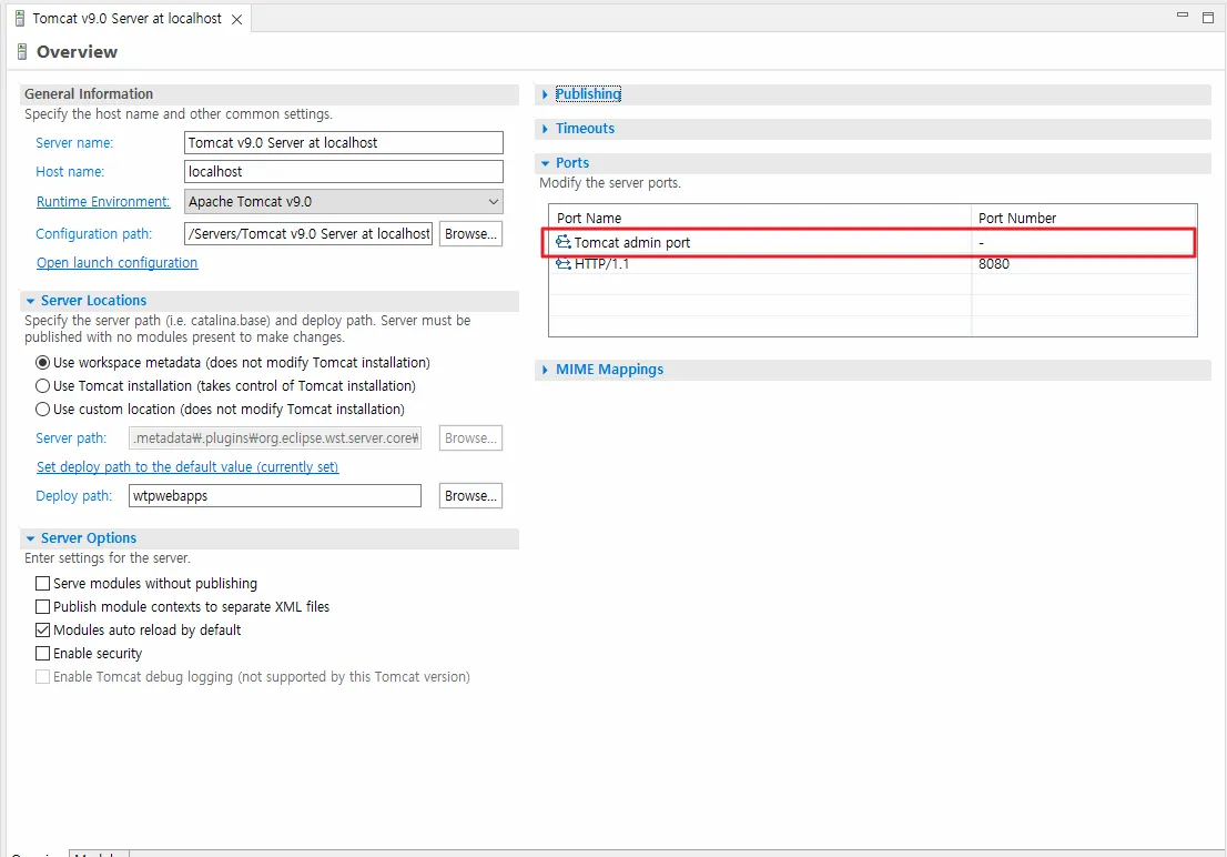 admin ํฌํธ๊ฐ ์ค์ ๋์ง ์์์ ๋, ์๋ฒ ์คํ ์ ์๋์ ๊ฐ์ ์๋ฌ ๋ฐ์