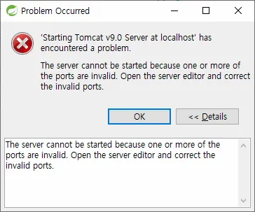 The server cannot be started because one or more of the ports are invaild.