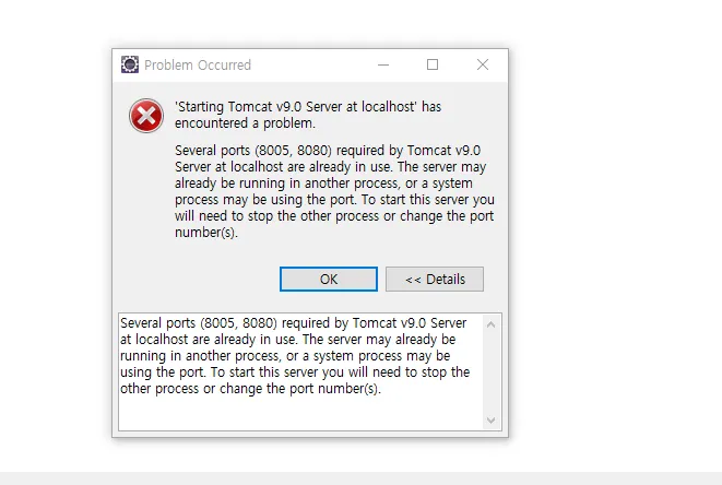 ์ด๋ฏธ ํด๋น ํฌํธ๋ฒํธ๋ฅผ ๋ค๋ฅธ ํ๋ก์ธ์ค๊ฐ ์ฌ์ฉํ๊ณ ์๋ ๊ฒฝ์ฐ