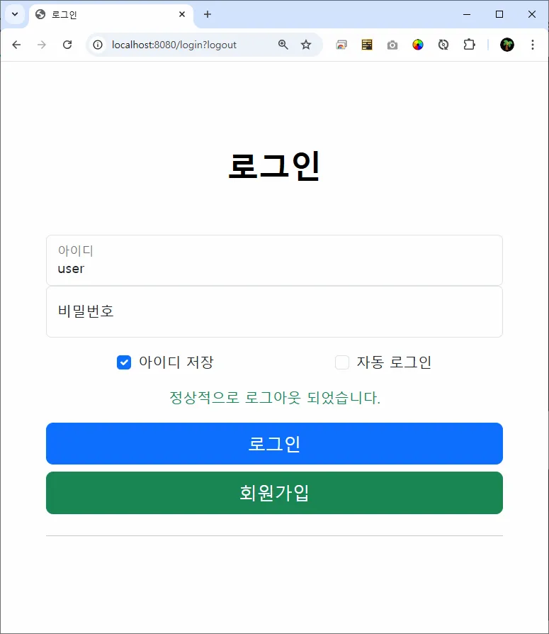 <!-- ๋ก๊ทธ์์ ์๋ฃ -->