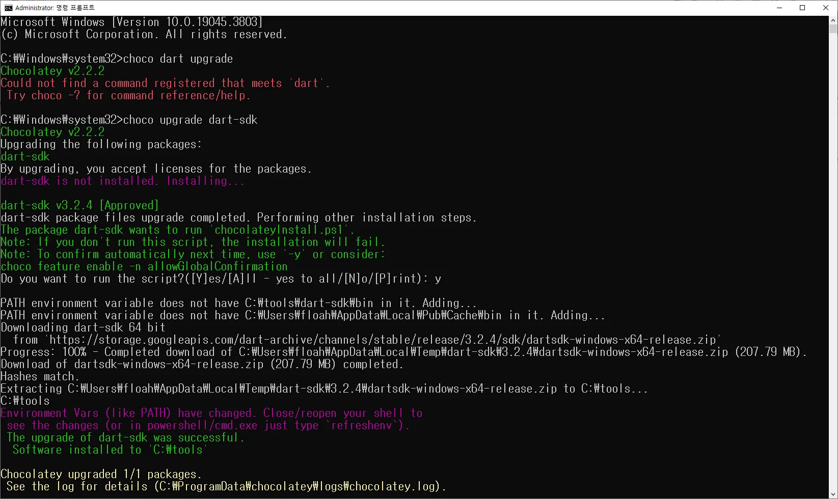 choco upgrade dart-sdk