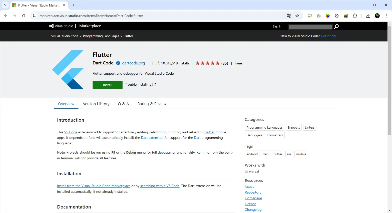 winget 으로 설치 시, C:\Program Files\Flutter 기본 경로에 설치 됩니다.