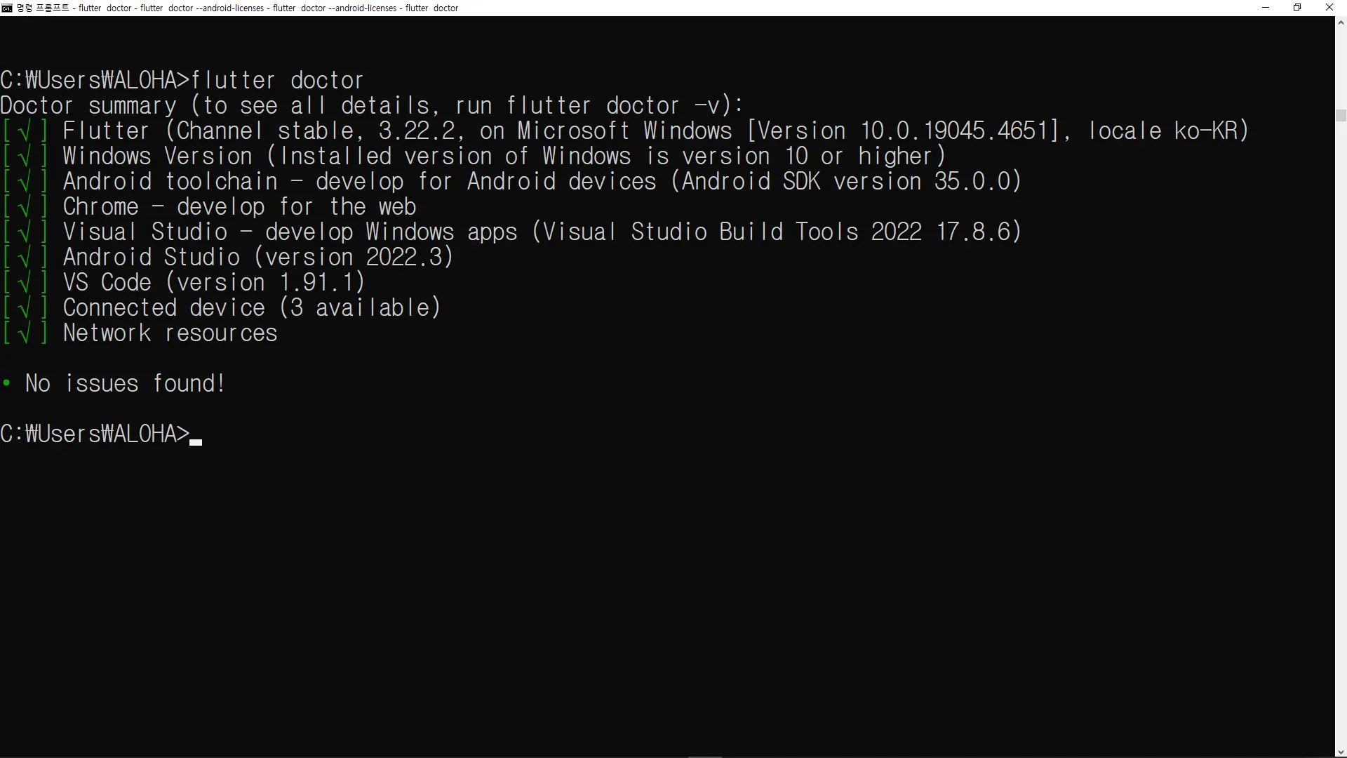 : 개발 환경의 설정 및 필수 구성 요소를 검사하고 문제를 해결하는 데 도움을 주는 명령어