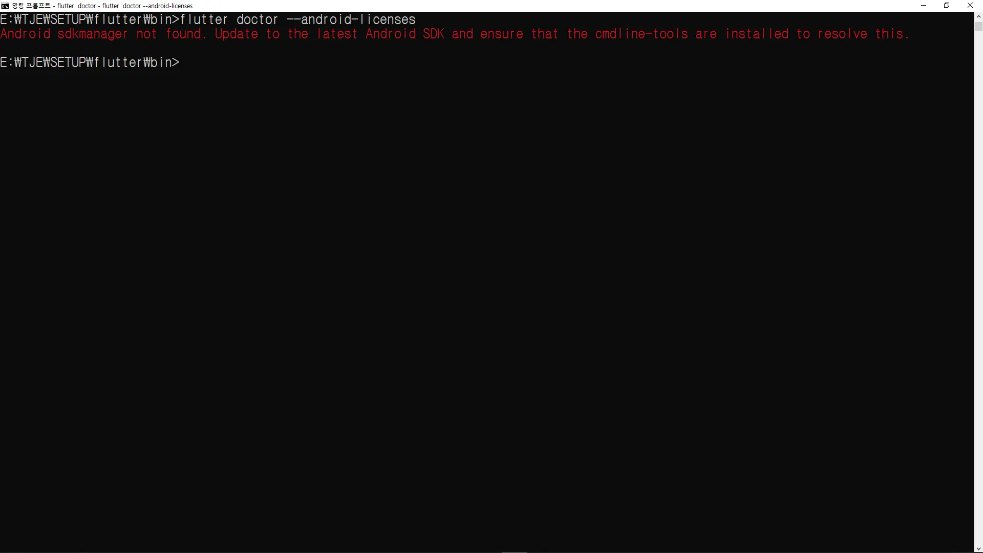 (명령어를 입력하여 라이센스 동의를 하라고 알려주고 있는데, 먼저 명령어를 사용하기 위해서는 cmdline-tools 라는 플러그인이 설치되어야 명령어를 사용할 수 있습니다.)
