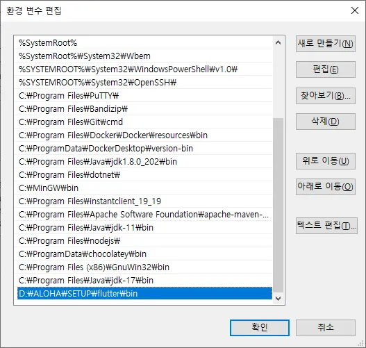 플러터 SDK 는 압축해제만으로 설치를 진행합니다.