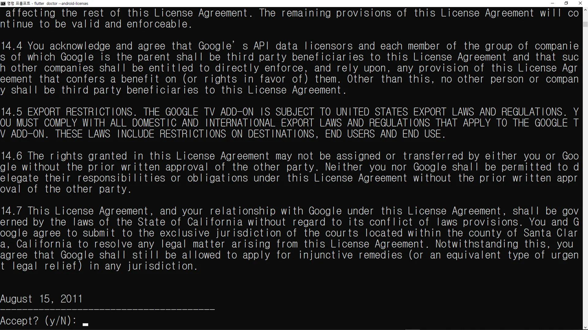 안드로이드 관련 라이센스 동의가 필요합니다.
