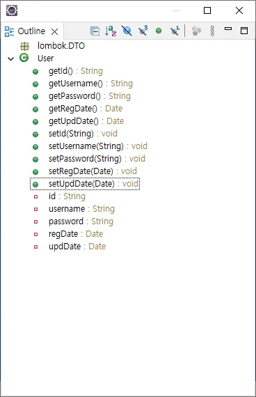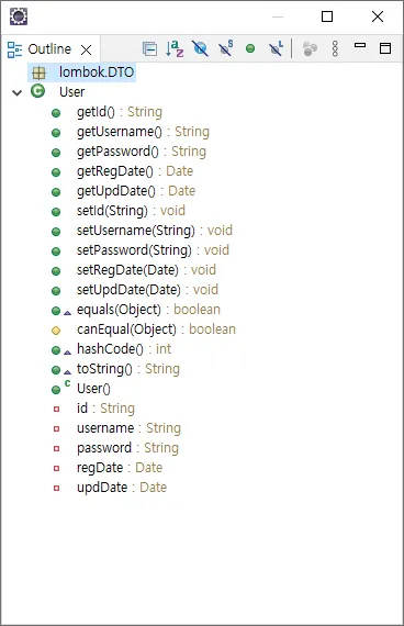 μμ±μ λ° λ©μλ(getter, setter, toString) μλ μμ±