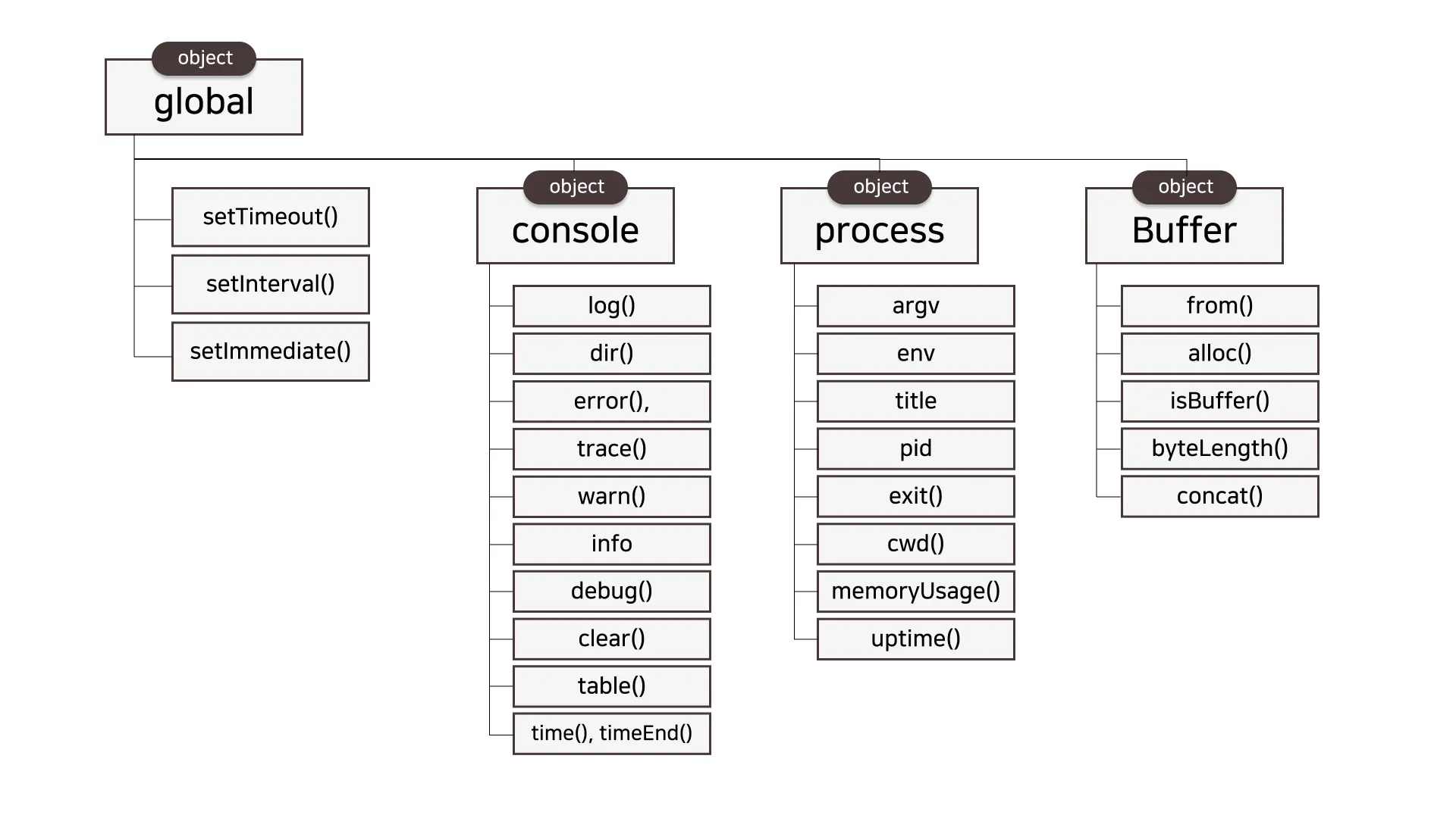 Node.js์ global ๊ฐ์ฒด๋ ๋ชจ๋ ๋ชจ๋์์ ์ ๊ทผ ๊ฐ๋ฅํ ์ ์ญ ๊ฐ์ฒด์
