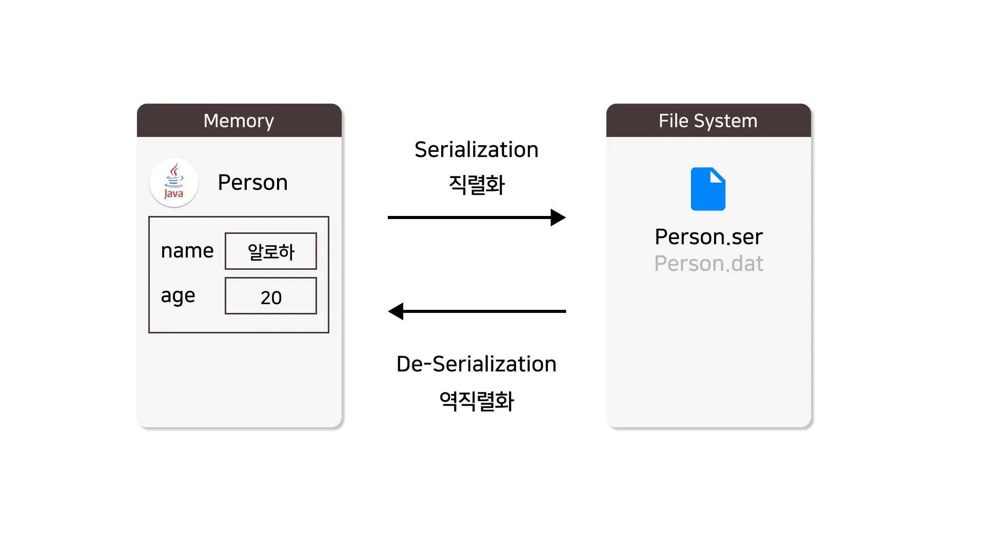 κ°μ²΄λ₯Ό μ€νΈλ¦Όμ ν΅ν΄ μ μ‘νκ±°λ νμΌλ‘ μ μ₯ μν΄ λ°μ΄νΈ ννλ‘ λ³ννλ κ³Όμ