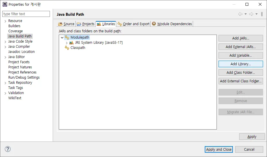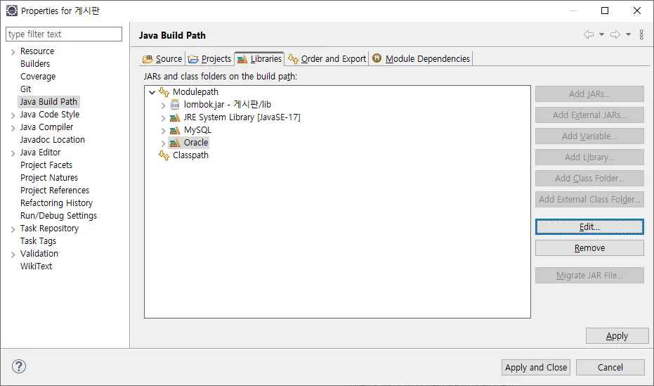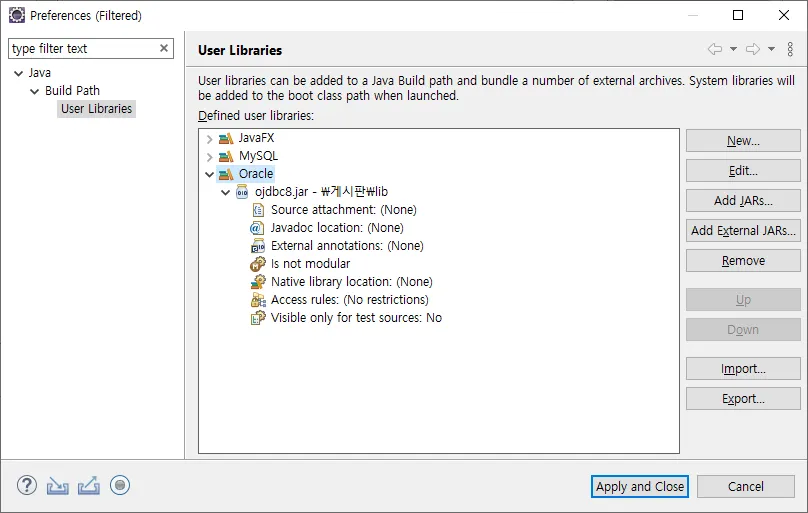 OJDBC ๋๋ผ์ด๋ฒ ์ถ๊ฐํ๊ธฐ