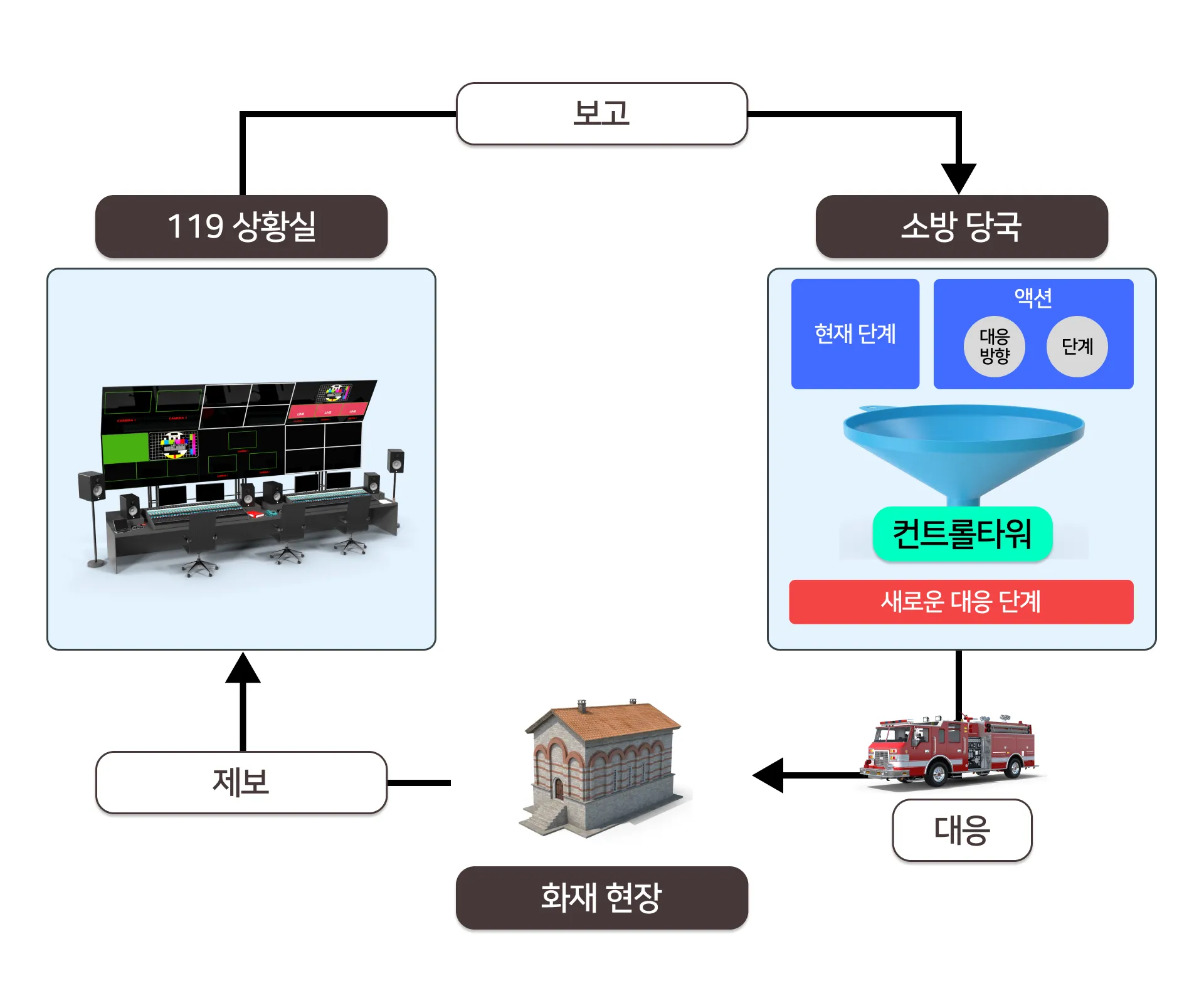 μ΄λ κ² νμ¬ νμ₯μ μ λ³΄κ° 119 μν©μ€μ μ λ¬λκ³ , μ΄μ λν μλ°© λΉμ λμ λ¨κ³λ₯Ό μλ°© λΉκ΅ 컨νΈλ‘€ νμμμ μ²λ¦¬νμ¬ μλ‘μ΄ λμ λ¨κ³λ₯Ό λ°ννκ³ νμ¬ νμ₯μ λμνλ κ³Όμ μ λ§μΉ Redux μ λμ κ³Όμ κ³Ό μ μ¬ν©λλ€.