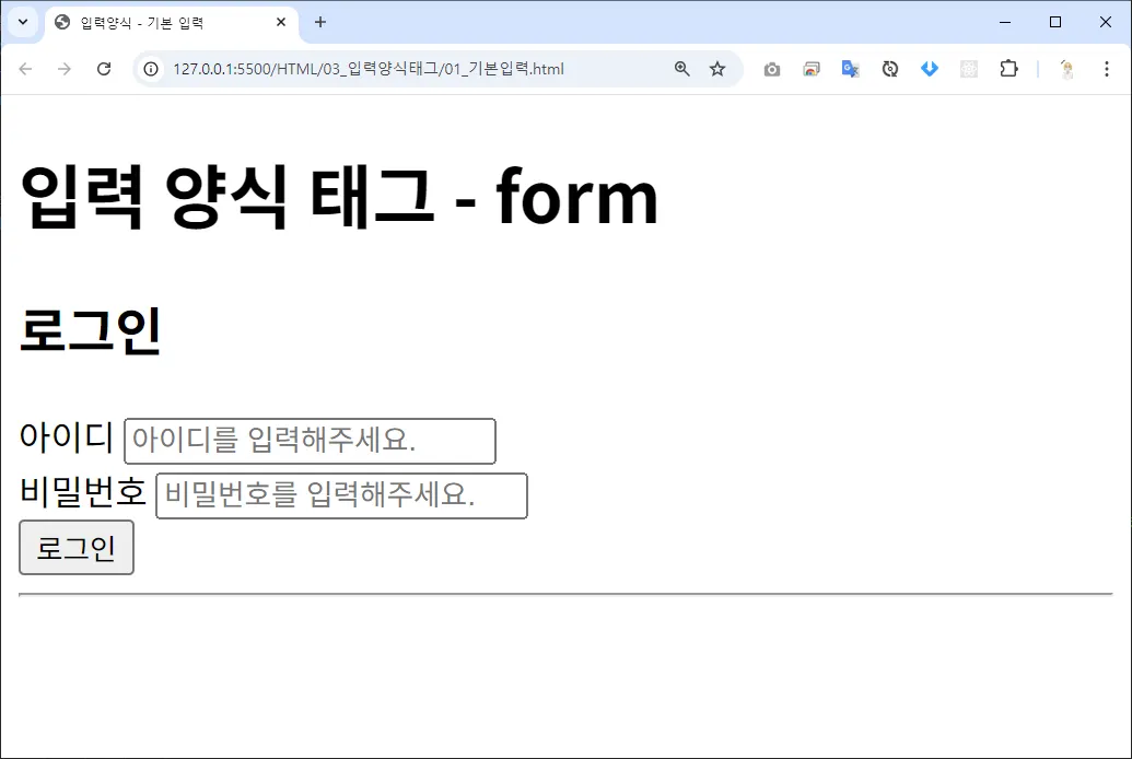 λ ₯ νλμ μ νμ μ μ (text, password, email λ±) | <input type="text"> |