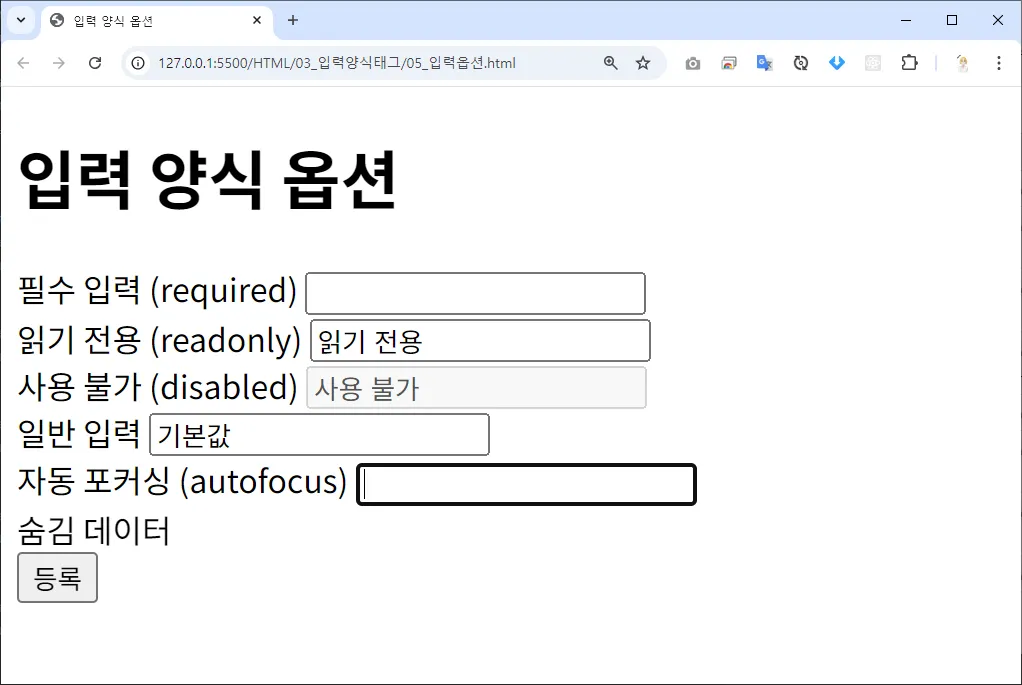 <label for="test5">μλ ν¬μ»€μ± (autofocus)</label>