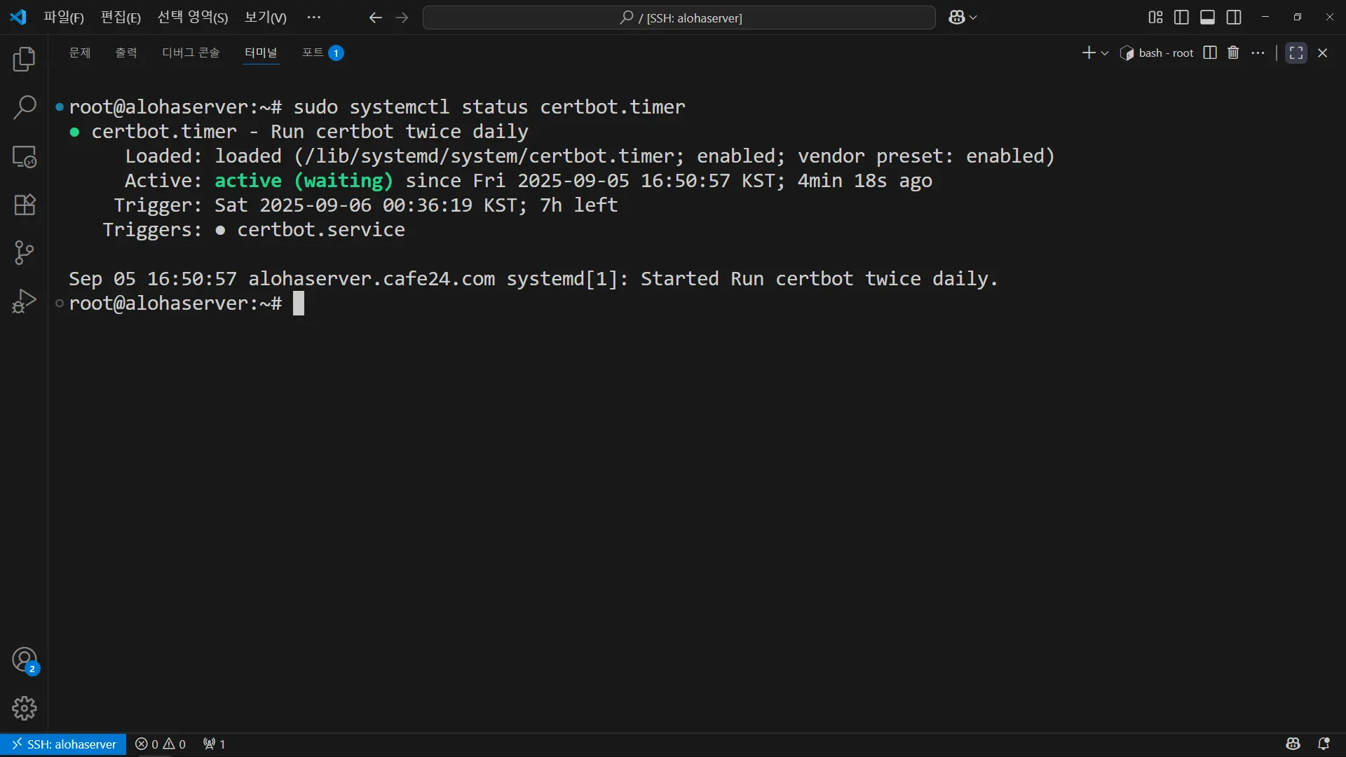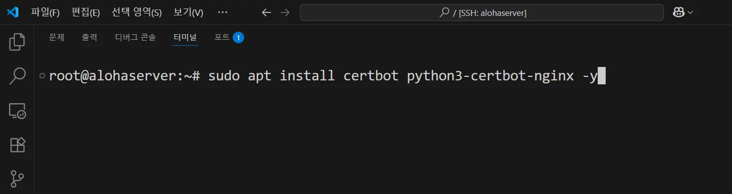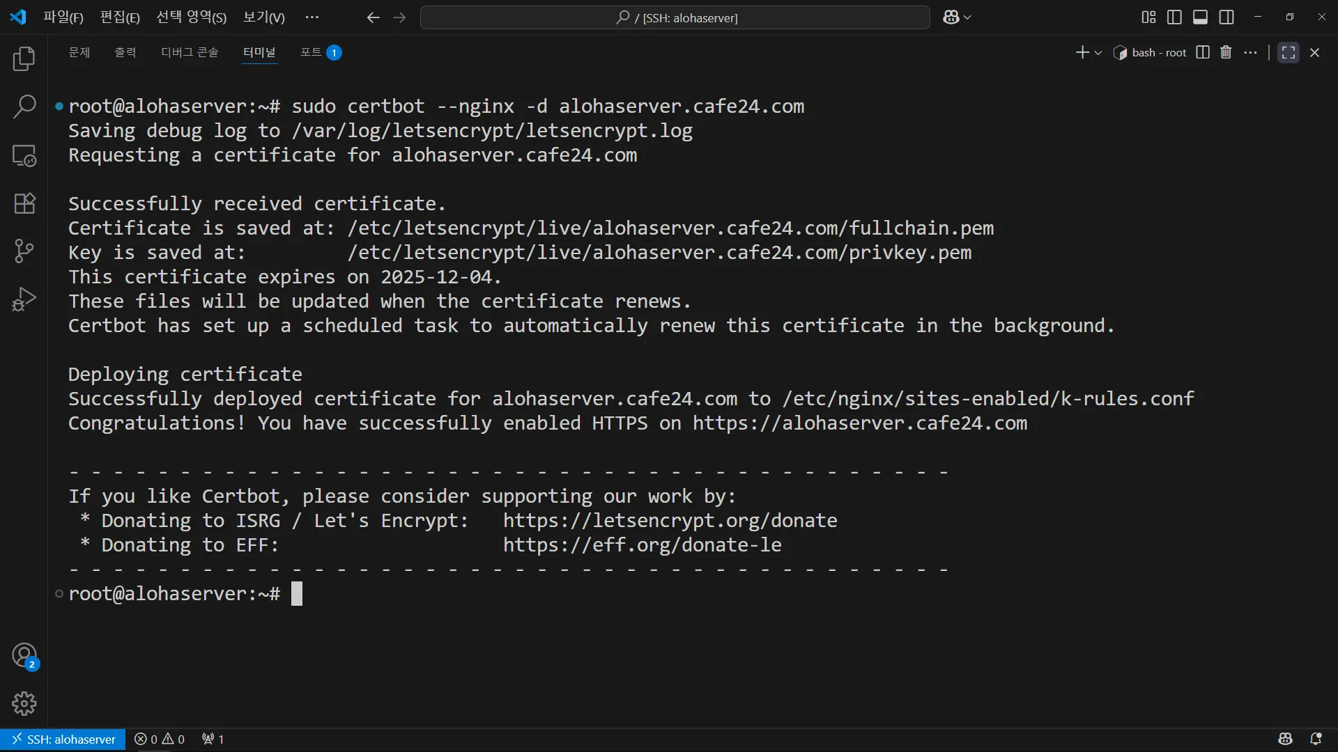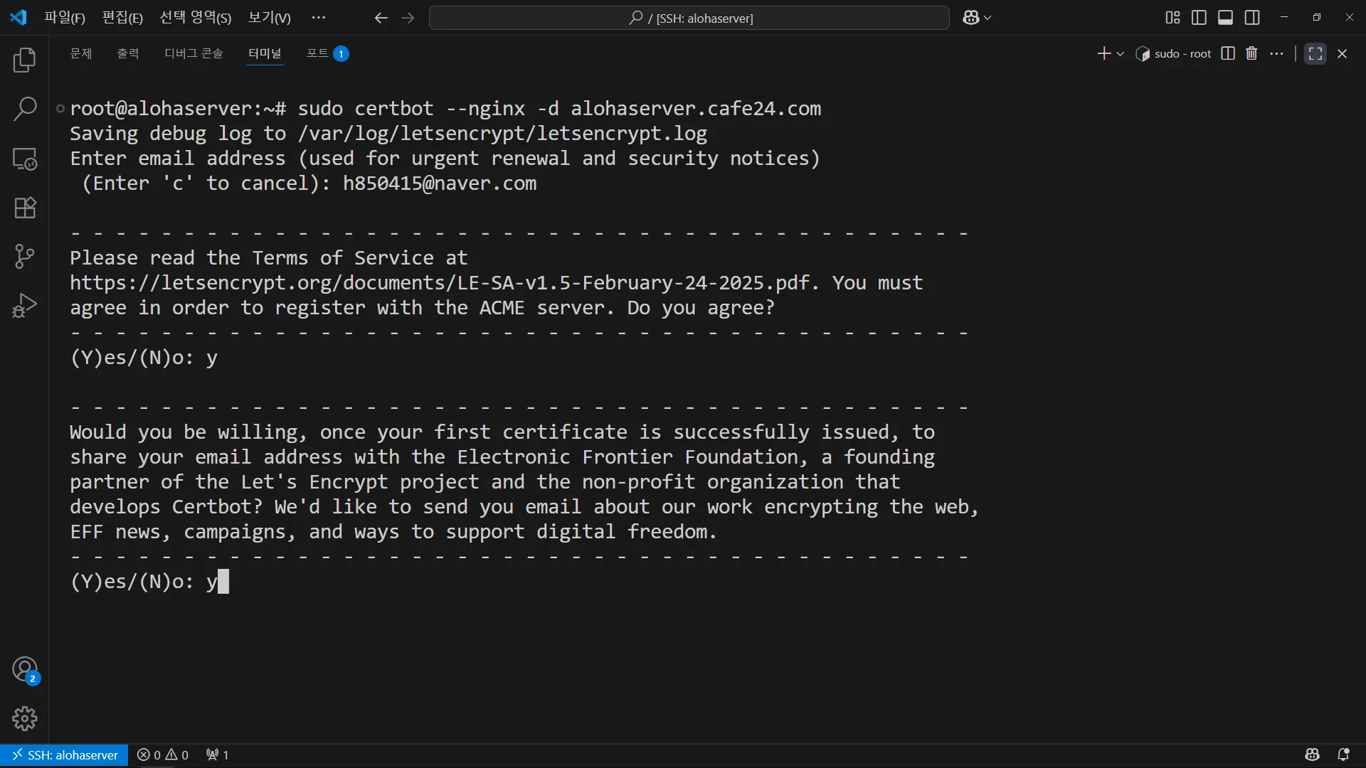 sudo certbot --nginx -d alohaserver.cafe24.com