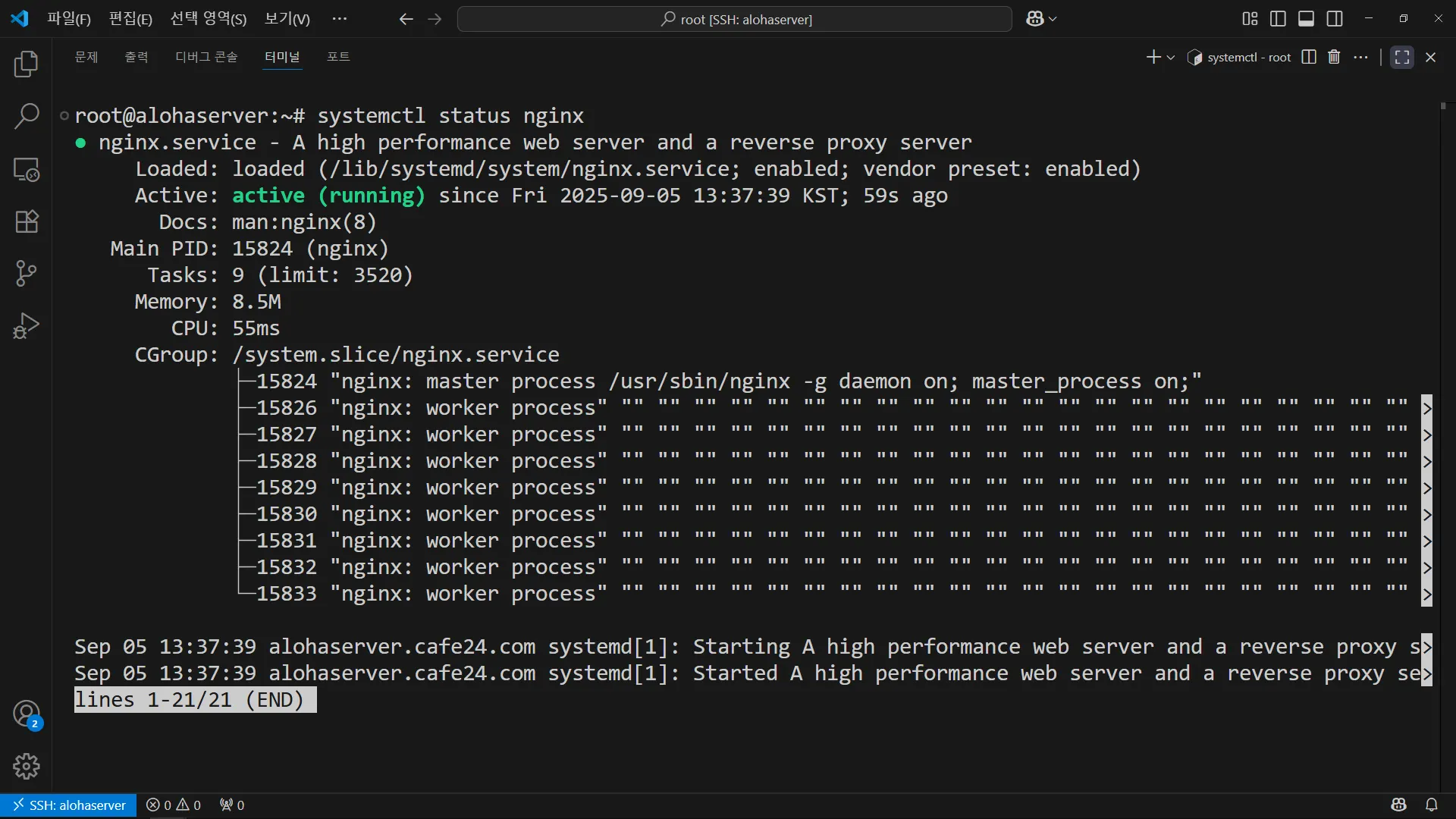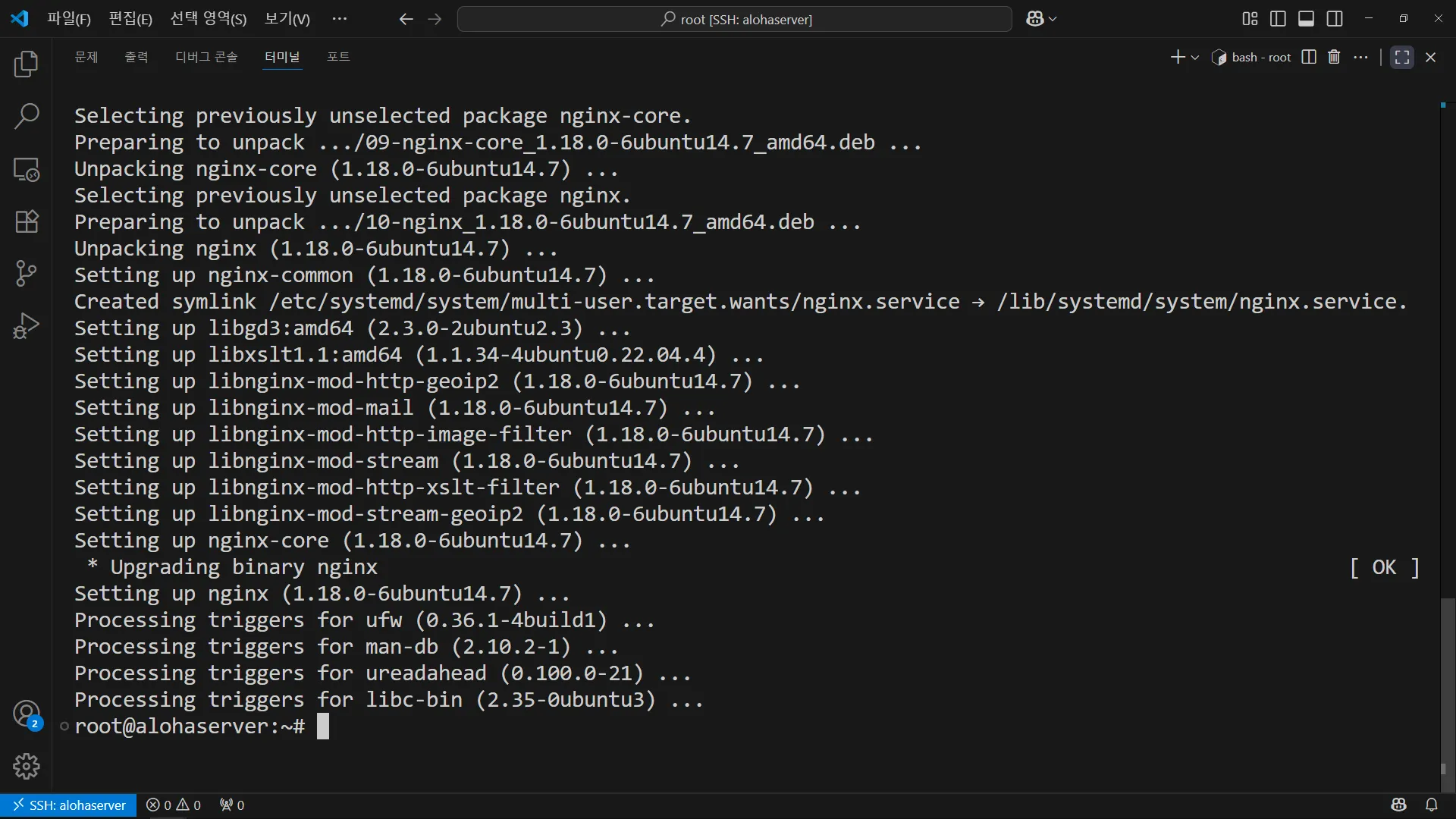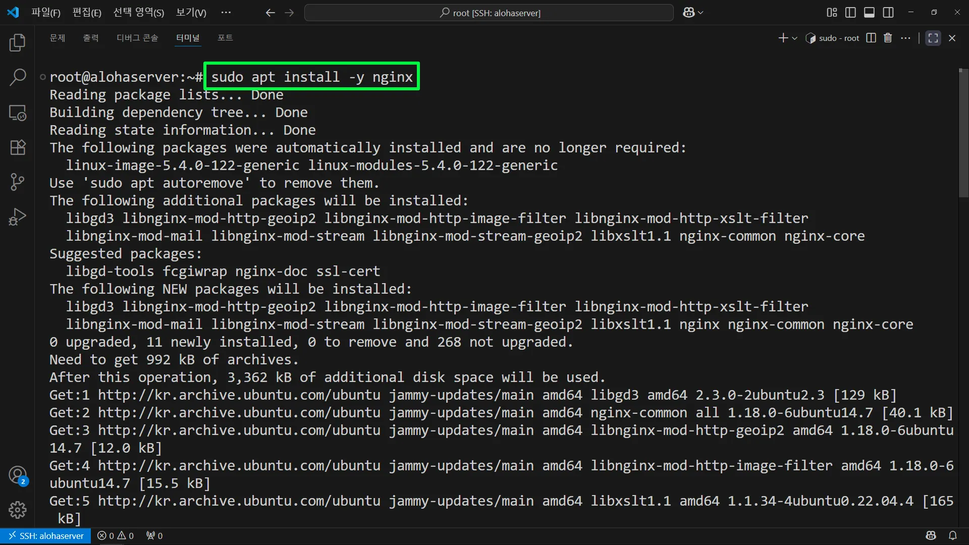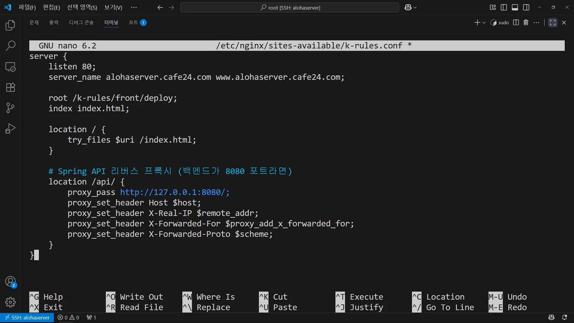 sudo certbot --nginx -d alohaserver.cafe24.com