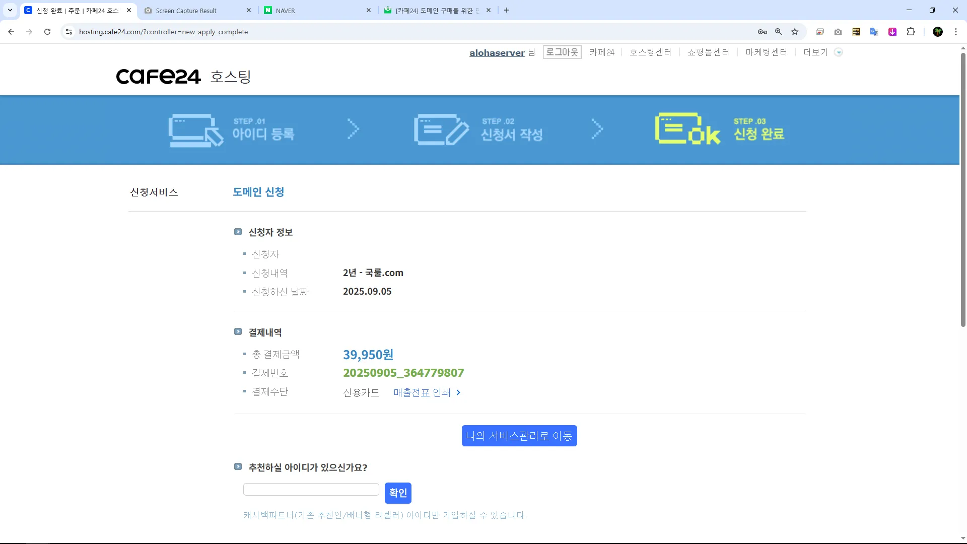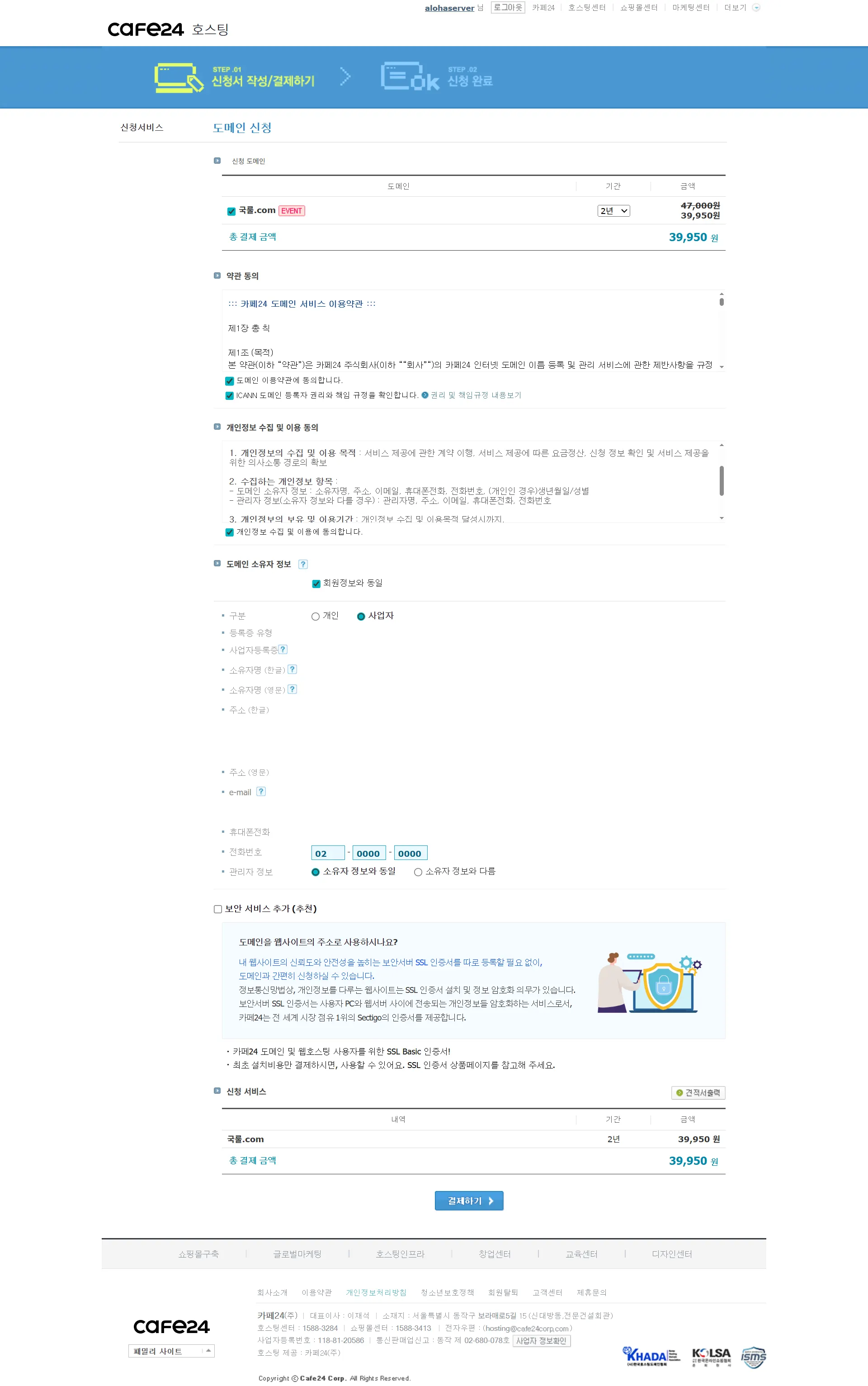 μΉ΄ν24 μλΉμ€ μ¬μ© μ, μΉ΄ν24 μμ λλ©μΈμ ꡬ맀νλ©΄ μλμΌλ‘ μ°κ²°ν΄μ£Όλ μλΉμ€κ° μμ΄μ μΉ΄ν24μμ ꡬ맀νλ κ²μ κΆμ₯ν©λλ€.