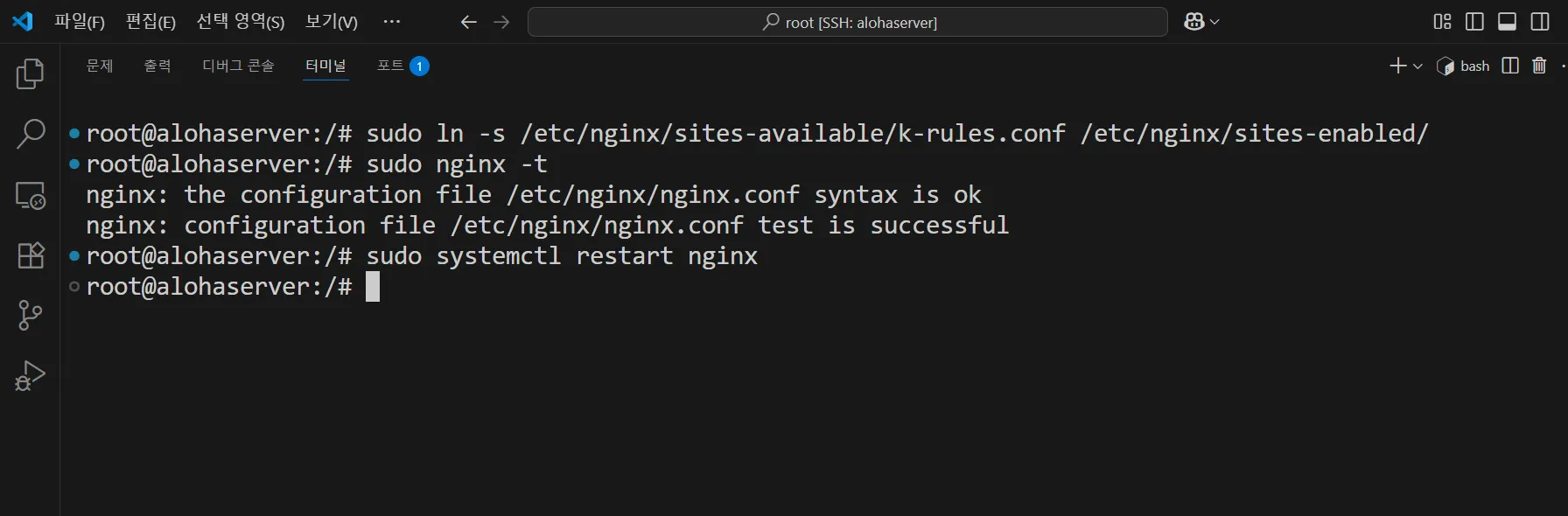 sudo ln -s /etc/nginx/sites-available/k-rules.conf /etc/nginx/sites-enabled/