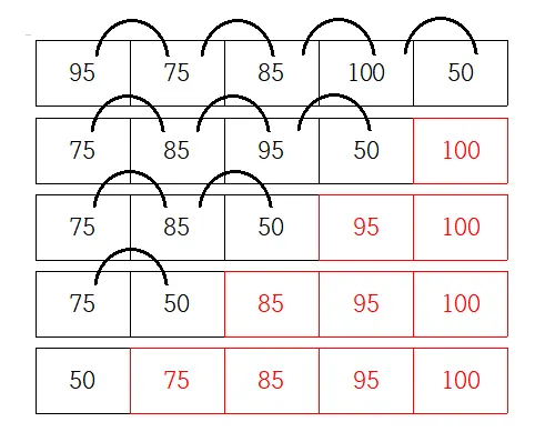 ๋ฐฐ์ด์ ๋๊น์ง ์ด ๊ณผ์ ์ ๋ฐ๋ณตํ๋ฉด ๊ฐ์ฅ ํฐ ๊ฐ์ด ๋งจ ๋ค๋ก ์ด๋ํฉ๋๋ค.