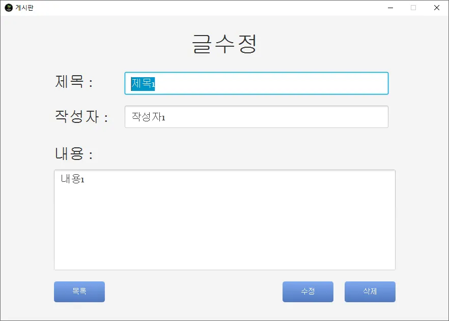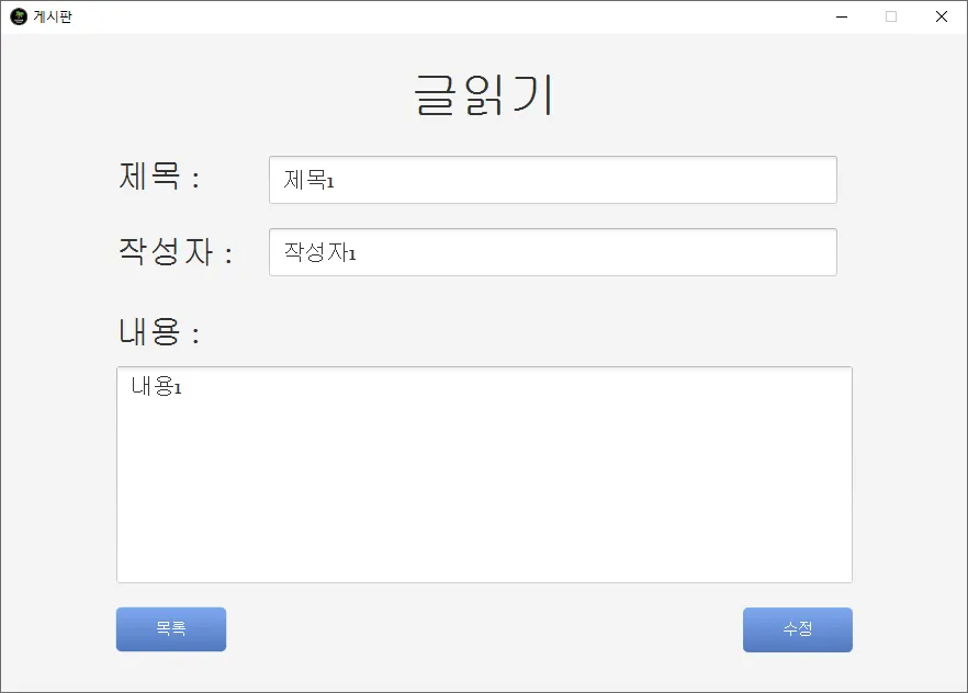 μ λ¬ λ°μ κ²μκΈ λ²νΈλ‘ κ²μκΈ μ‘°ννμ¬ TextField, TextArea μ μ λͺ©, μμ±μ, λ΄μ© μΆλ ₯