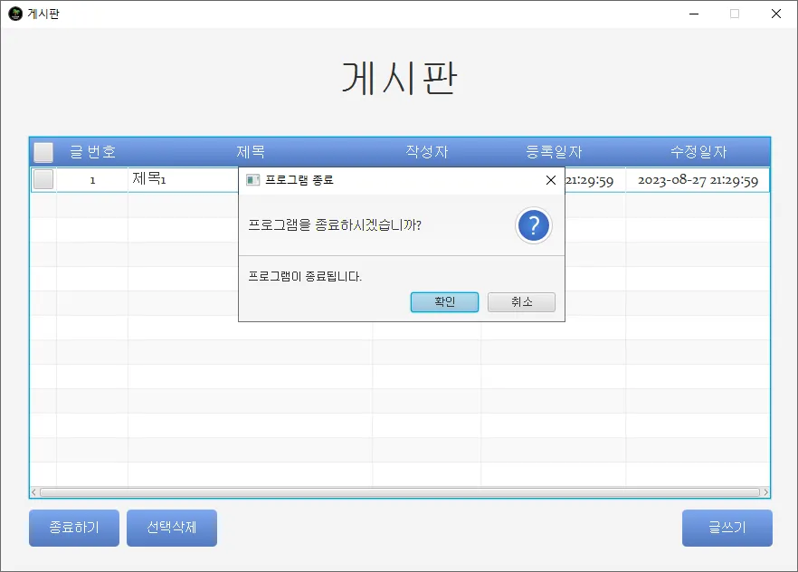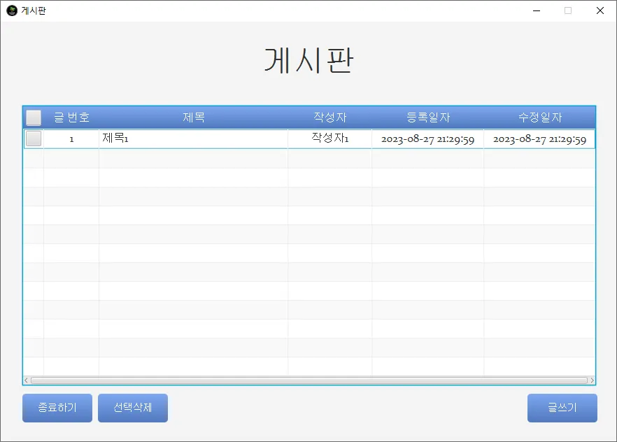 TableColumn : CheckBox, κΈλ²νΈ, μ λͺ©, μμ±μ, λ±λ‘μΌμ, μμ μΌμ