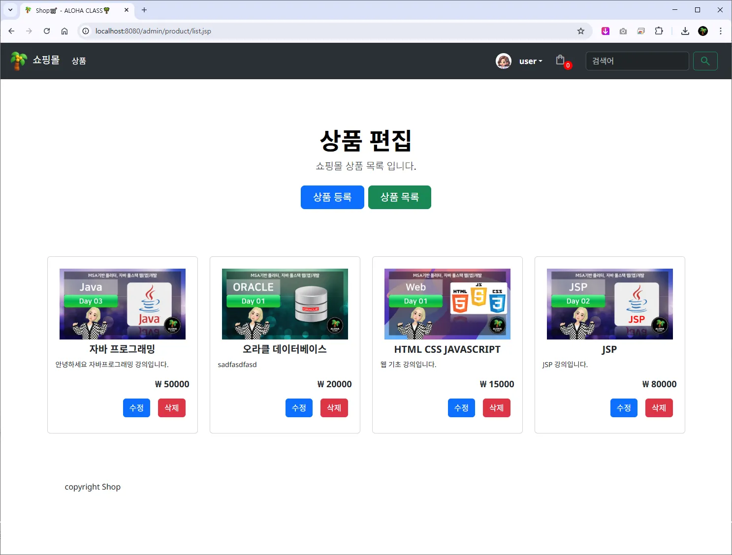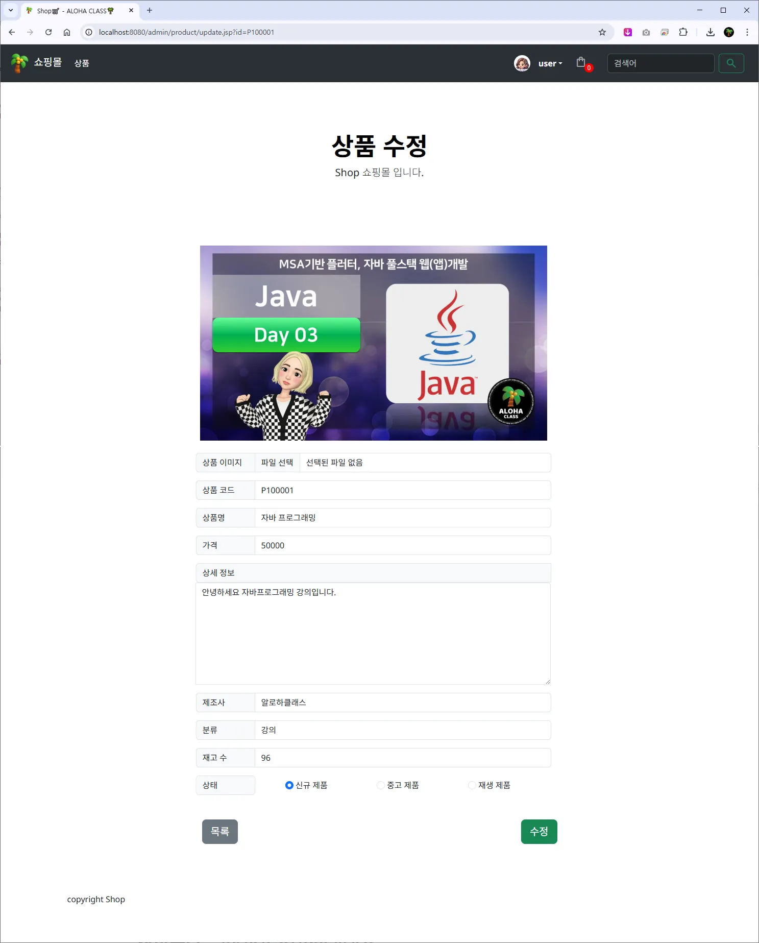 ์ํ ํธ์ง ๋ชฉ๋ก โ /admin/product/list.jsp