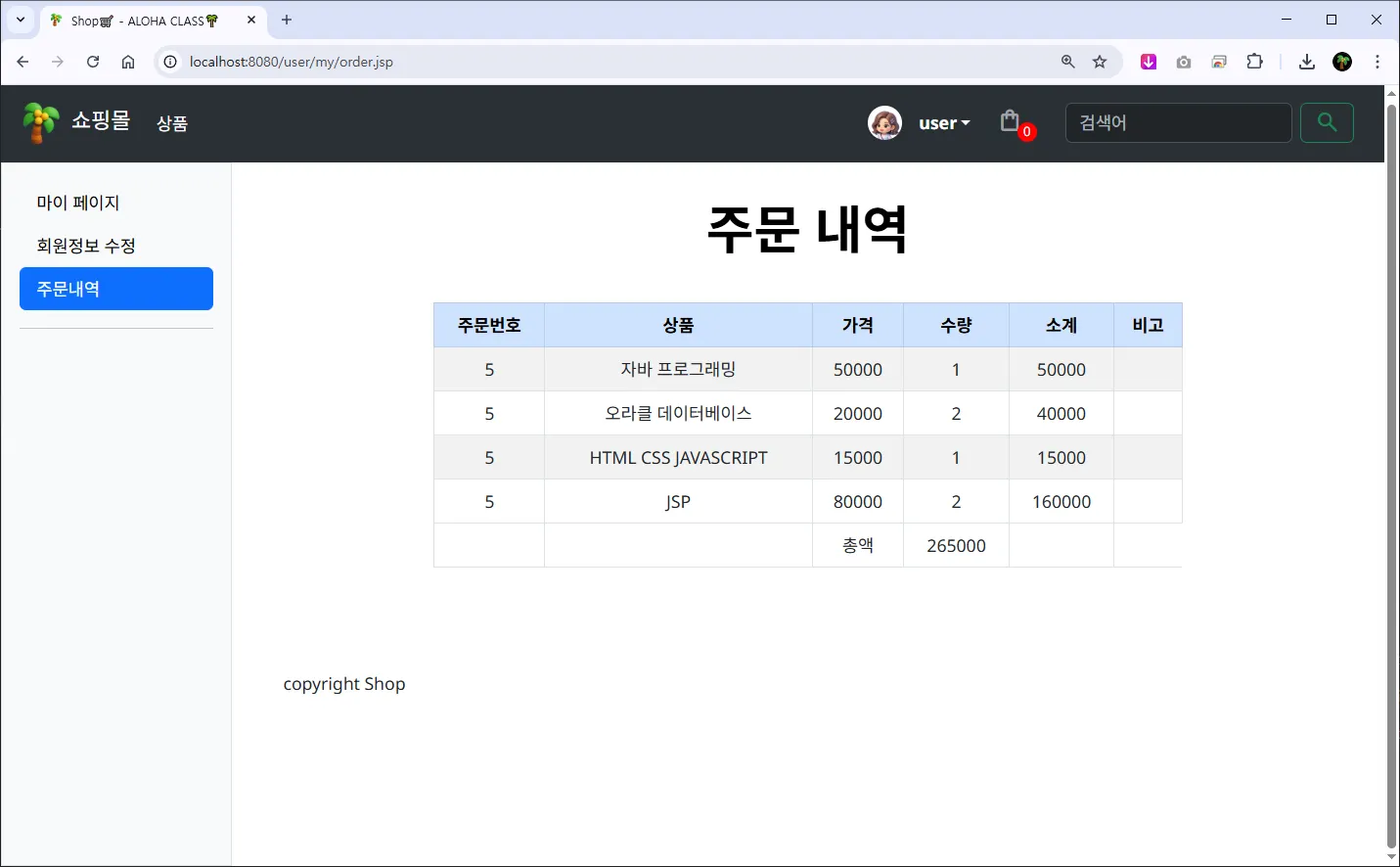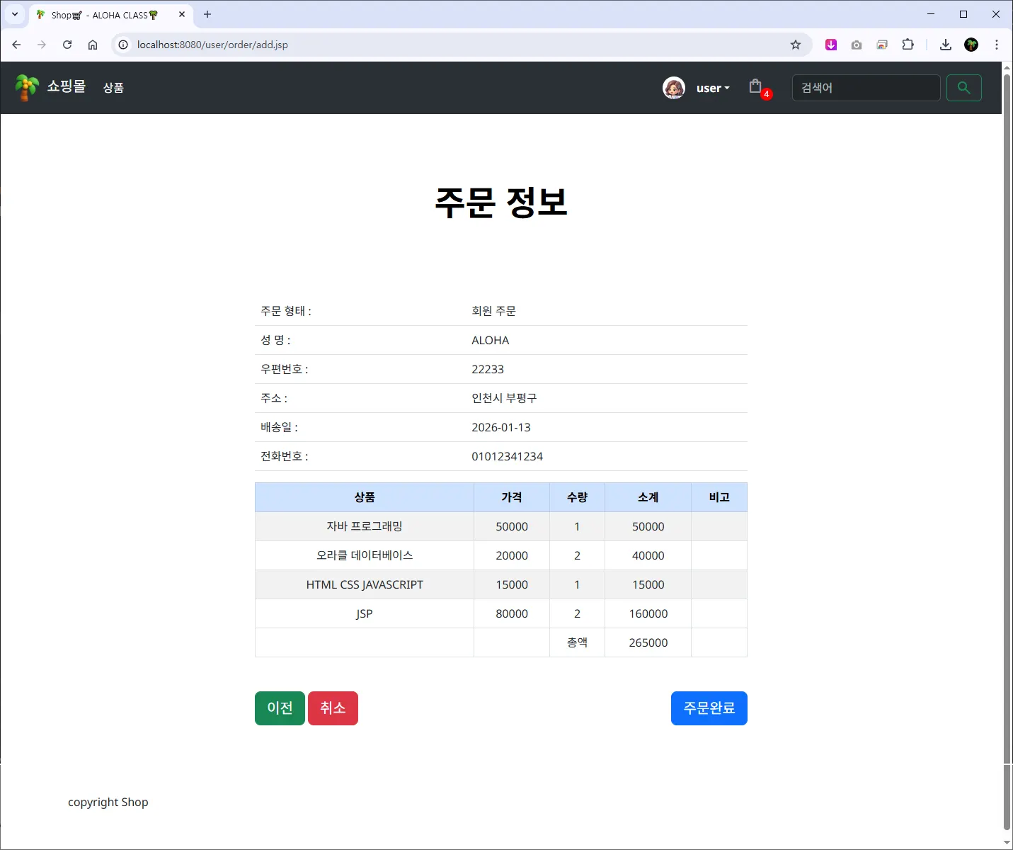 ์ฃผ๋ฌธ์ ๋ณด โ /user/order/add.jsp
