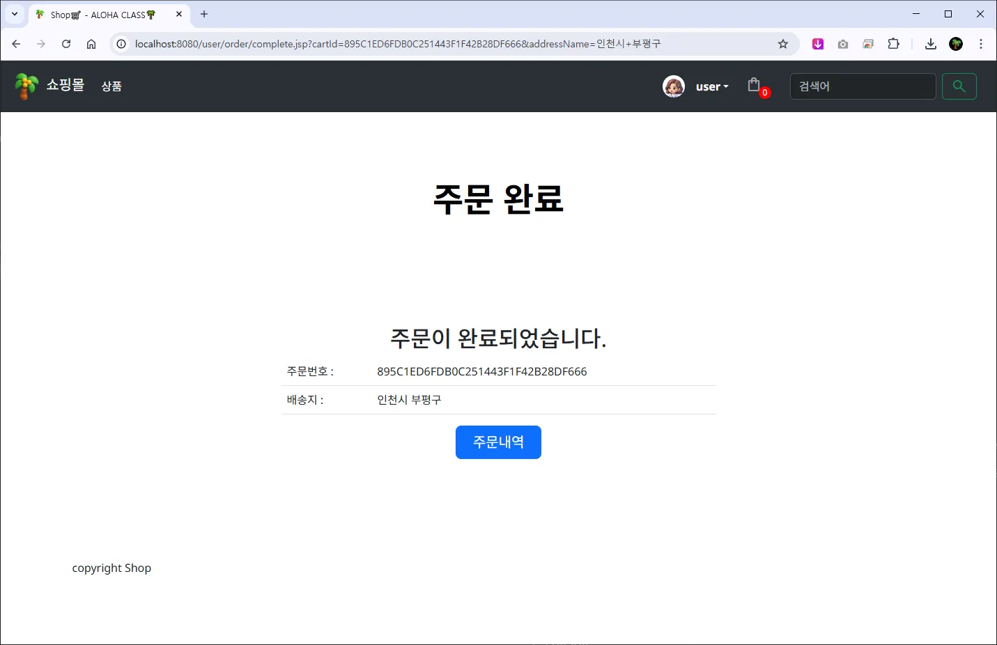 ์ฃผ๋ฌธ์๋ฃ โ /user/order/complete.jsp