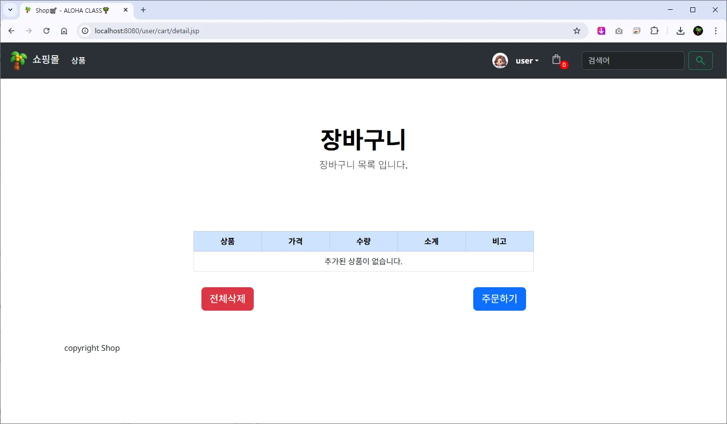 ์ฅ๋ฐ๊ตฌ๋ โ /user/cart/detail.jsp (์ฅ๋ฐ๊ตฌ๋ ๋น์์ ๋)