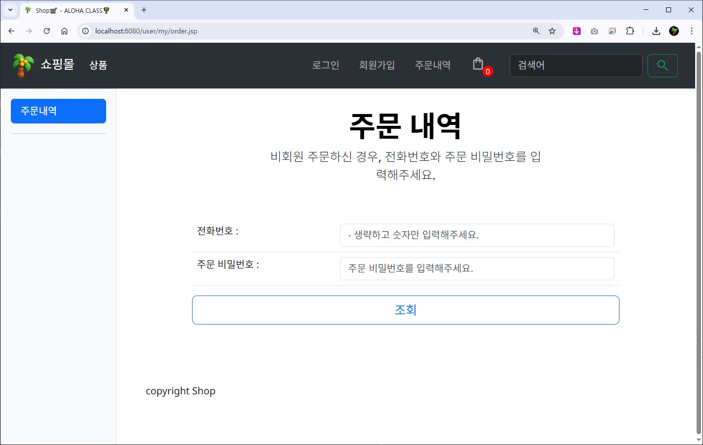 ๋นํ์์ธ ๊ฒฝ์ฐ: ์ ํ๋ฒํธ(phone), ์ฃผ๋ฌธ ๋น๋ฐ๋ฒํธ(order_pw) ๊ฐ ์ ์ฅ๋์ด์ผํ๋ค.