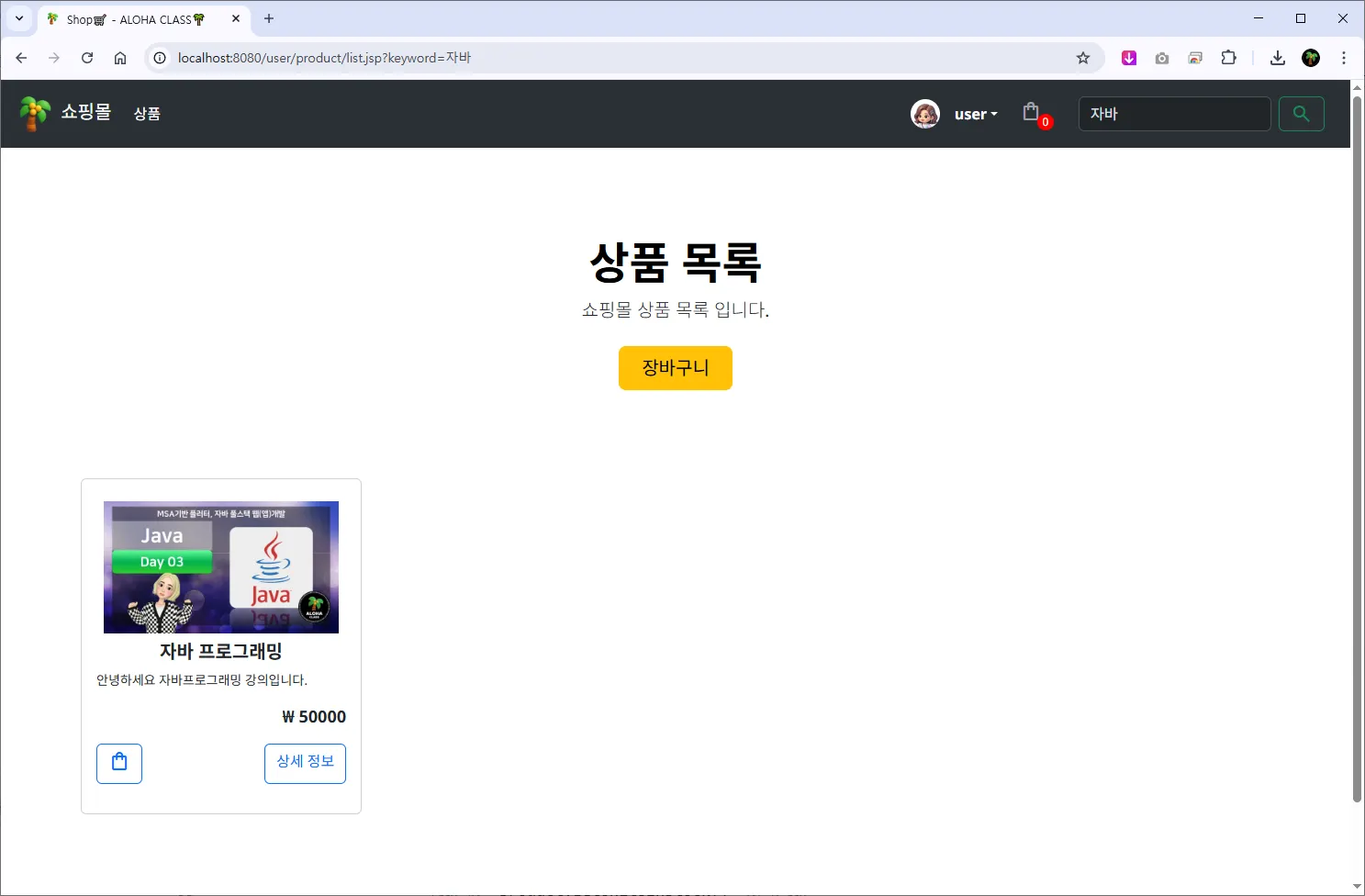 ์ฅ๋ฐ๊ตฌ๋ โ /user/cart/detail.jsp