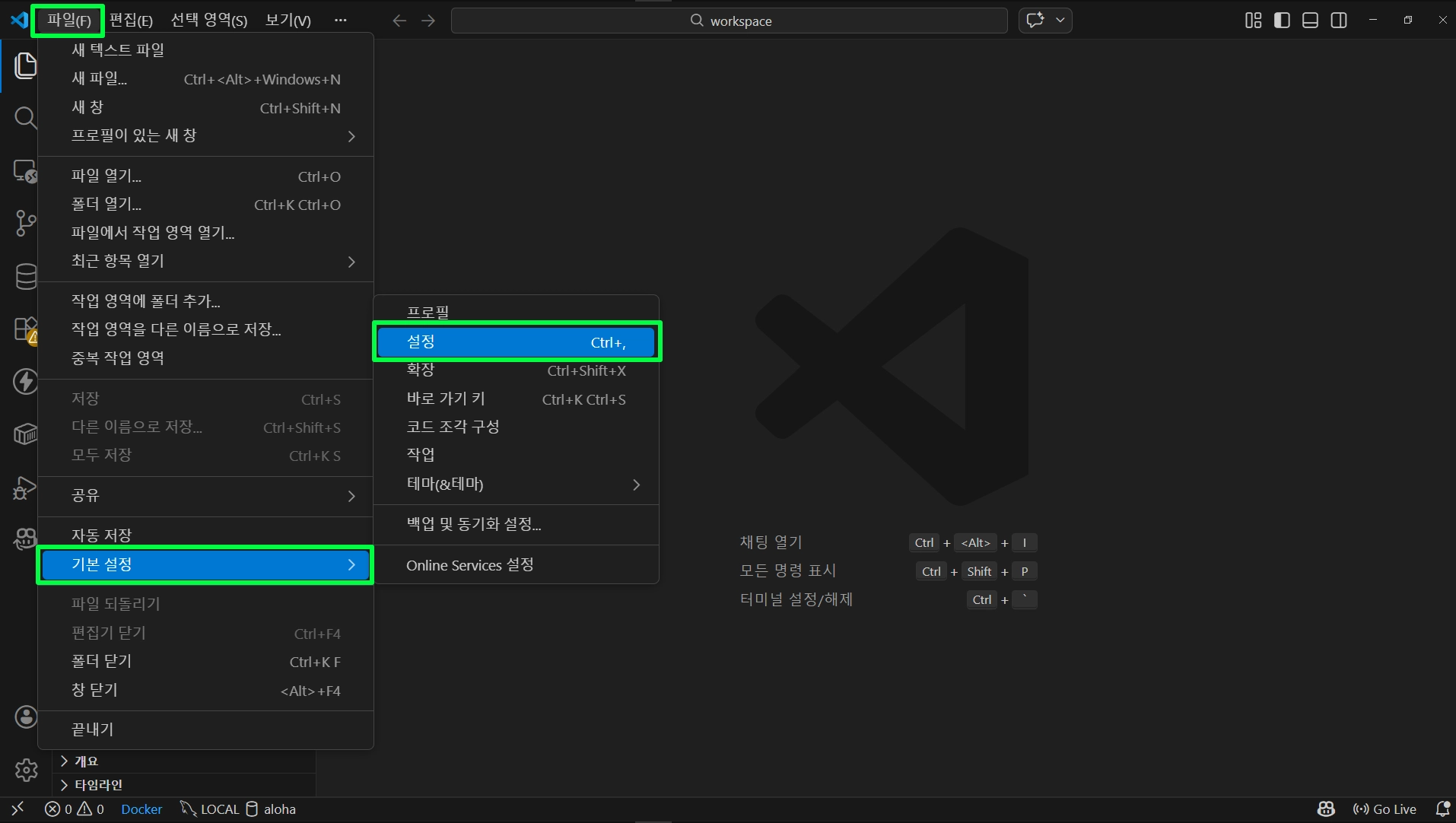 ํ์ผ > ๊ธฐ๋ณธ ์ค์ > ์ค์