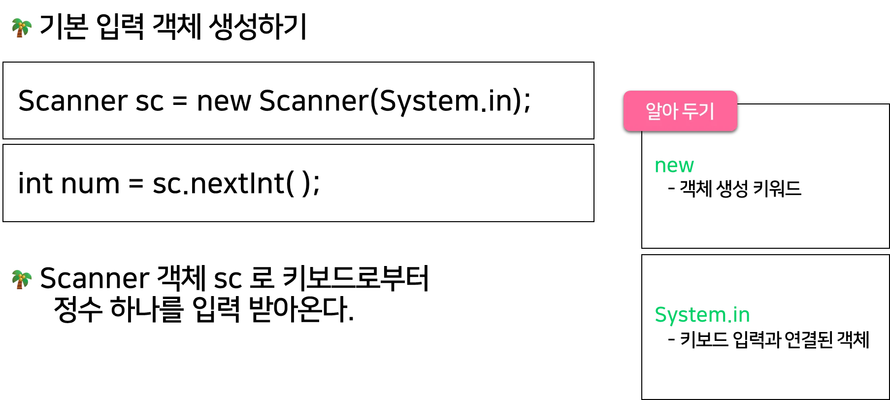 ๋๋ค. new ํค์๋๋ฅผ ์ฌ์ฉํ์ฌ ์๋ก์ด ๊ฐ์ฒด๋ฅผ ์์ฑํ๊ณ , ์์ฑ์ Scanner(System.in)์ ํธ์ถํ์ฌ System.in์ผ๋ก๋ถํฐ ์