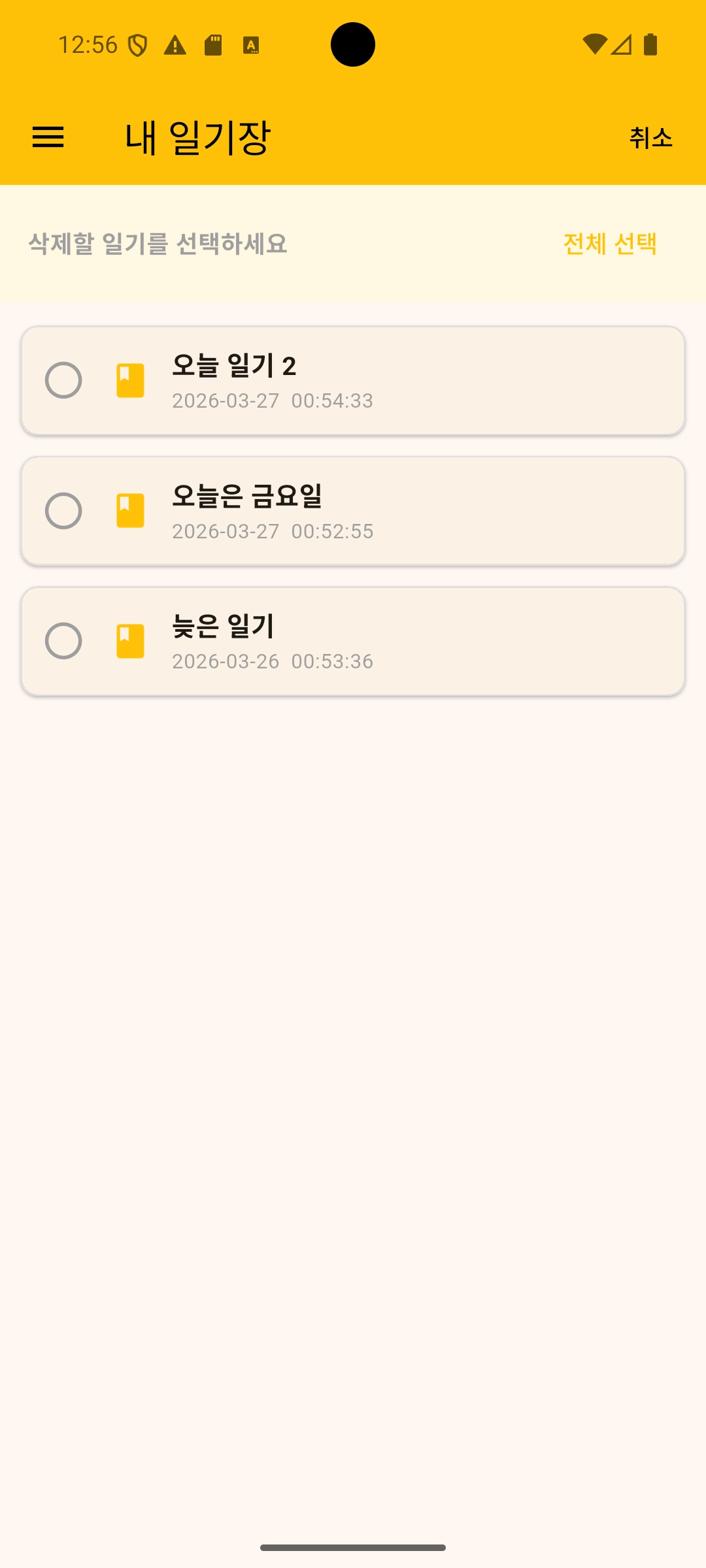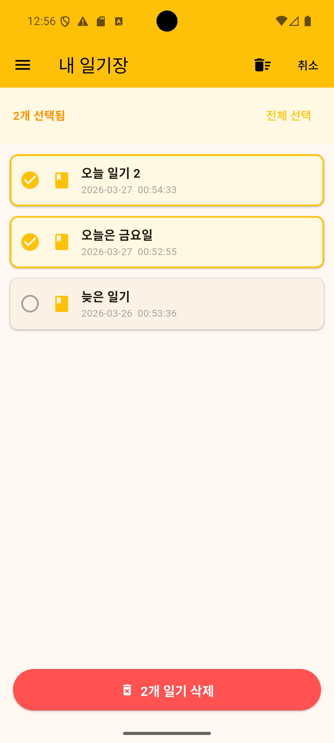 다중 선택 삭제 | 여러 일기 한 번에 삭제 |