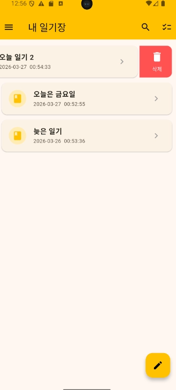 일기 목록 | 최신순 정렬, 스와이프 삭제 |