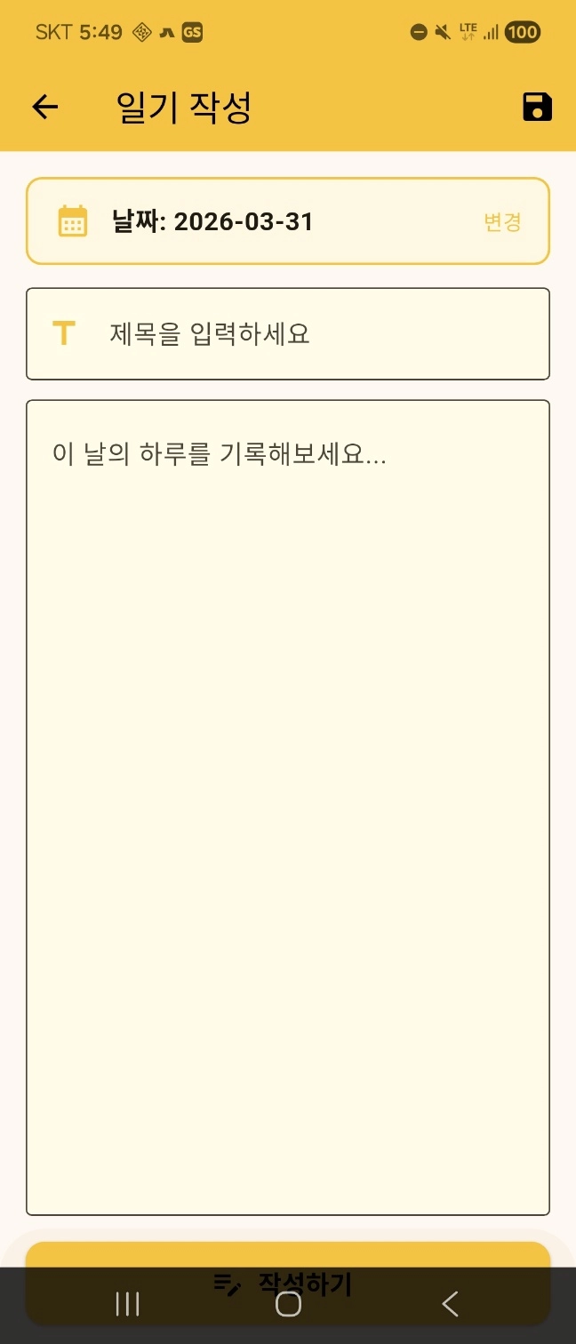 일기 작성 | 날짜·제목·본문 입력 후 저장 |