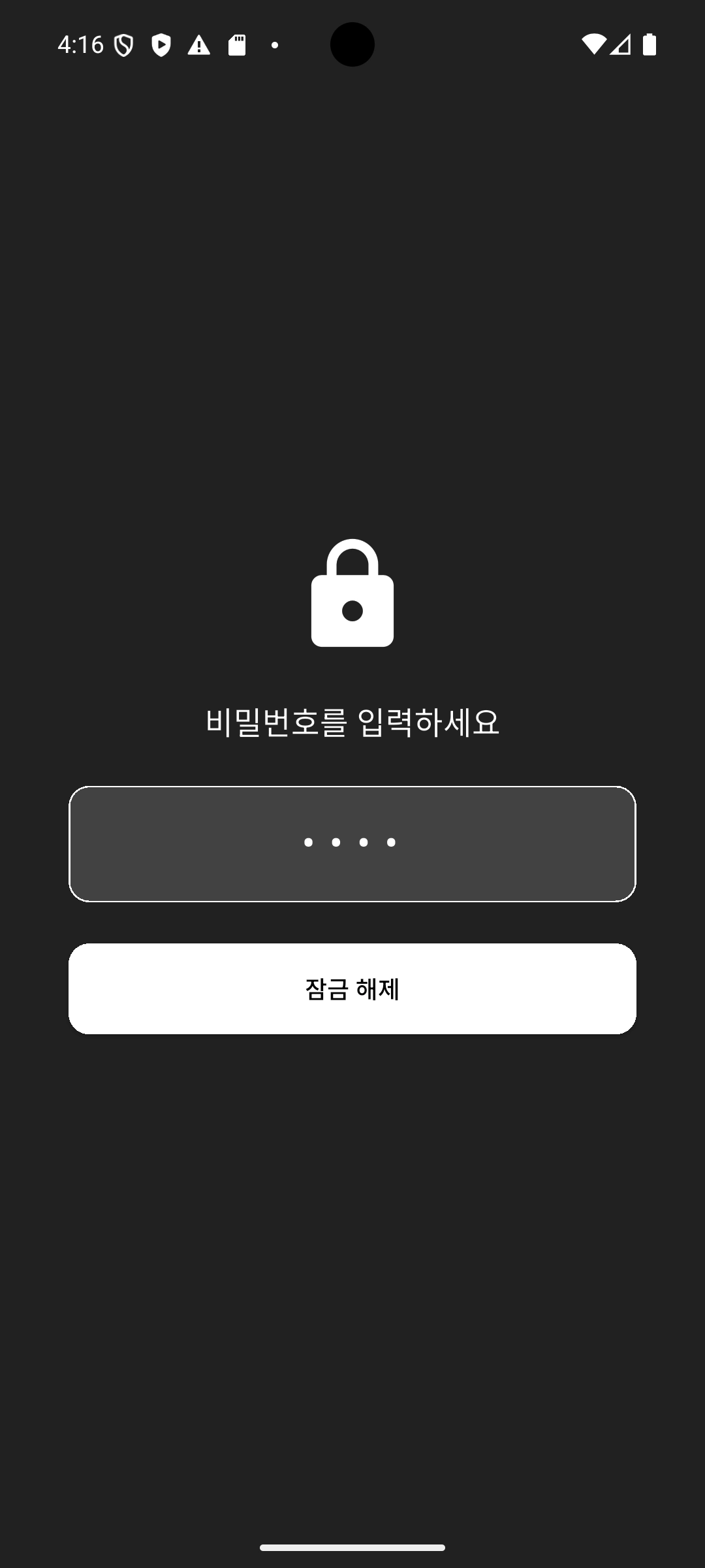 ThemeData.dark(): 시스템 다크 팔레트를 기본 적용합니다. 홈 화면이 LockPage이므로 앱 진입 시 항상 PIN 검증을 거칩니다.