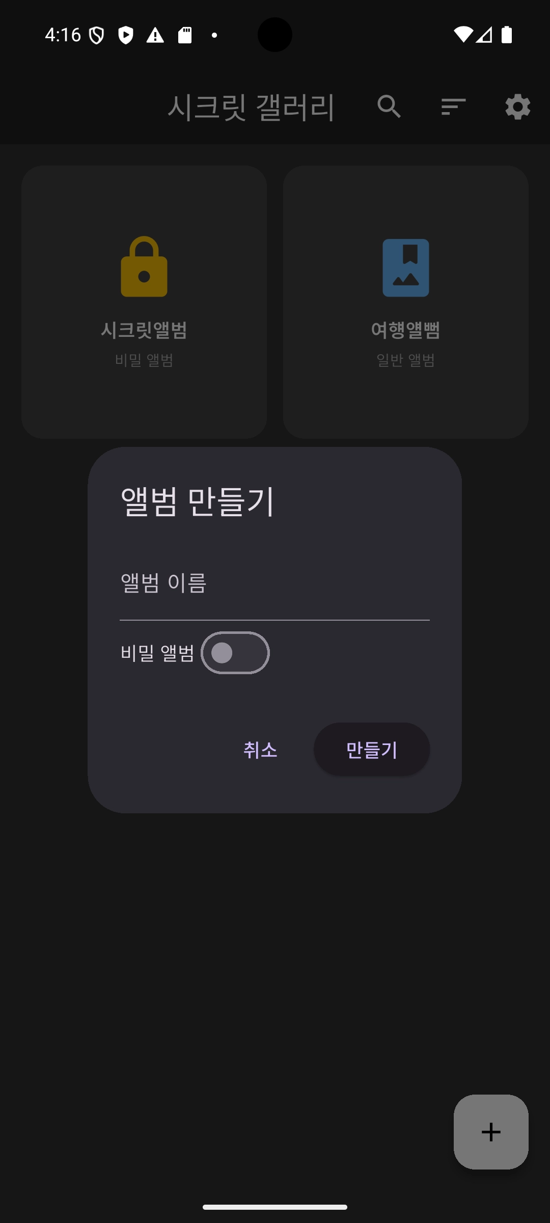 6. 앨범 생성 다이얼로그 → StatefulBuilder (비밀 앨범 토글 연동)