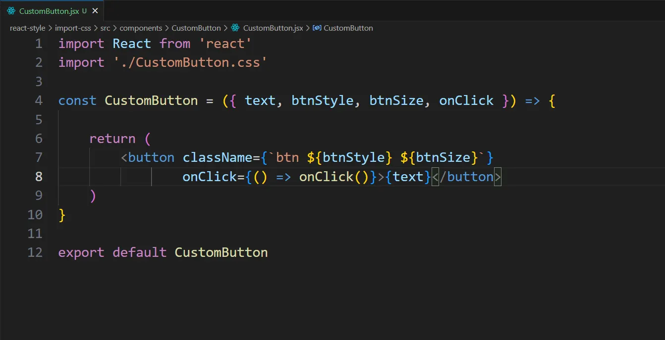 const CustomButton = ({ text, btnStyle, btnSize, onClick }) => {