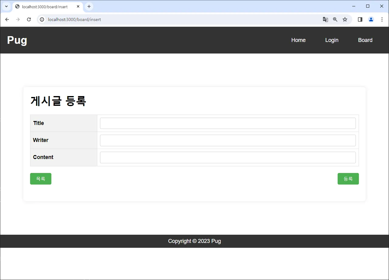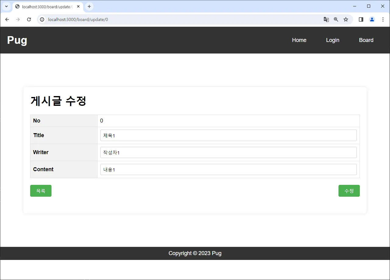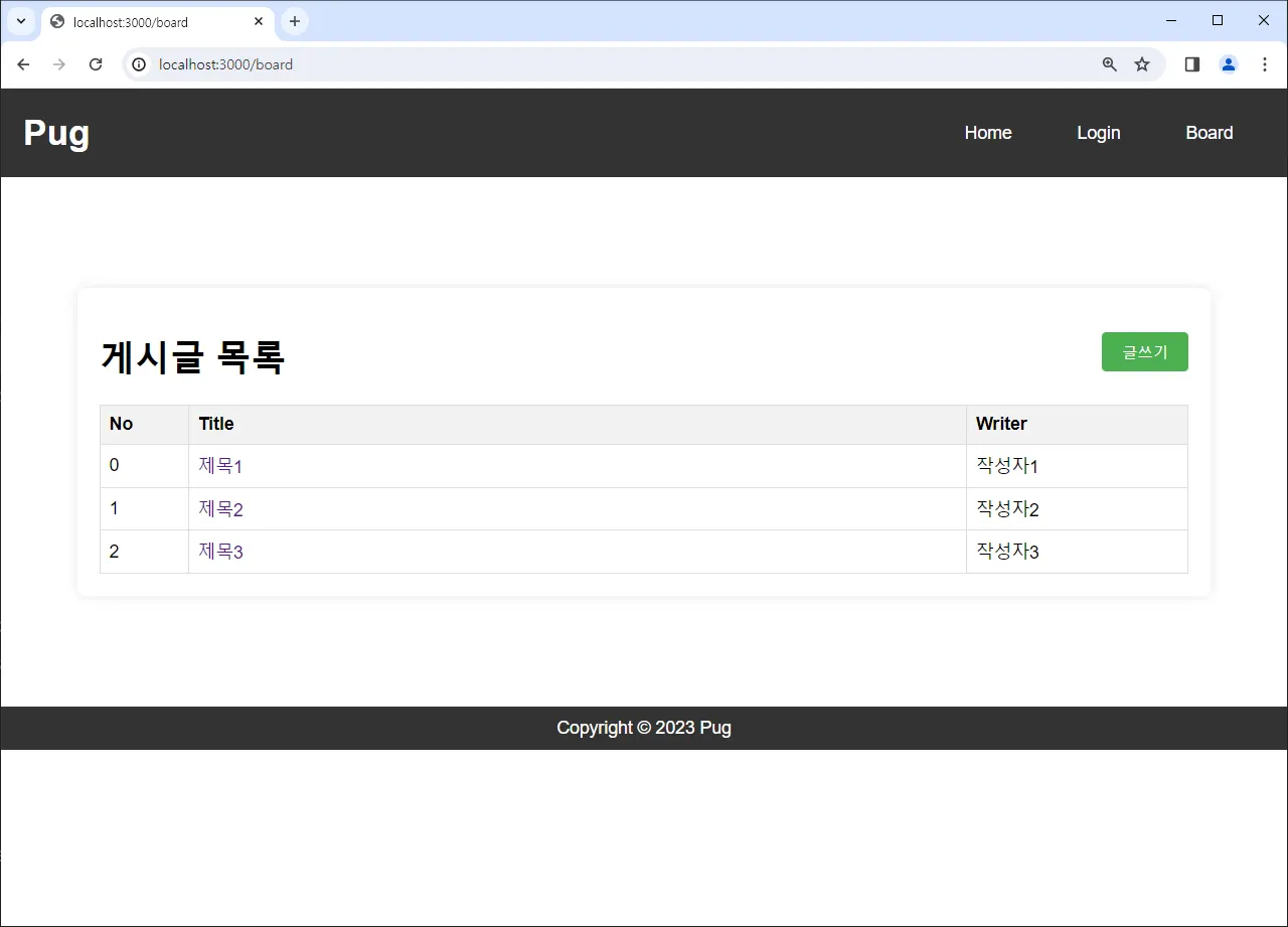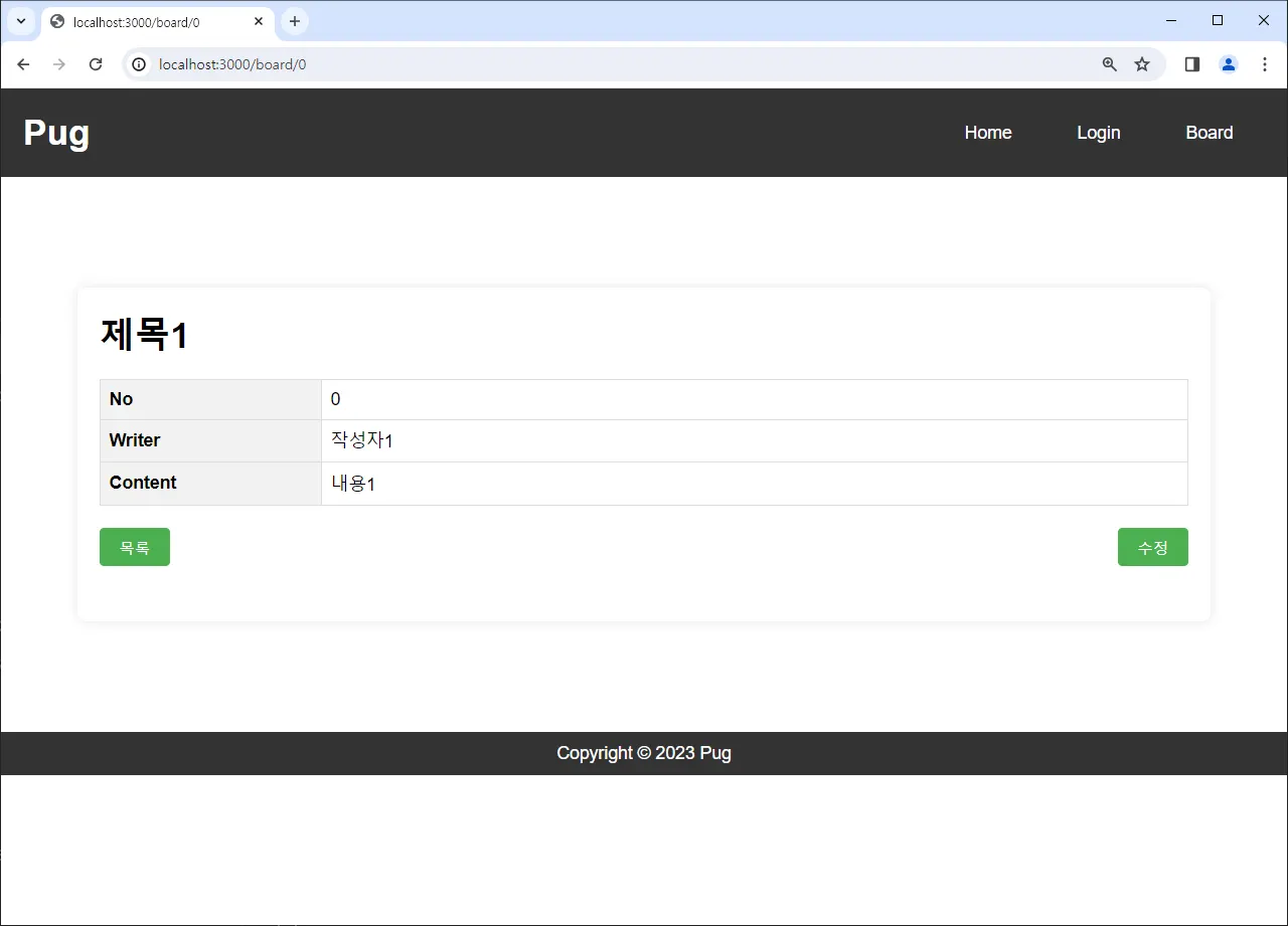 // ๋ทฐ ์์ง ์ค์ : Pug๋ฅผ ์ฌ์ฉํ๋๋ก ์ค์