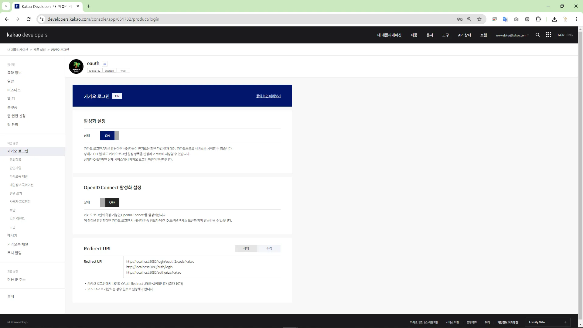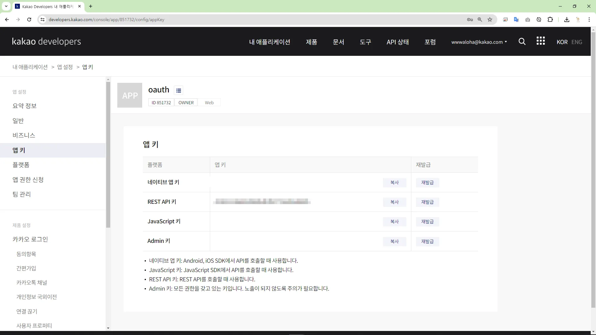 토큰 정보 보기: 액세스 토큰(Access token)의 정보와 토큰의 유효기간을 제공합니다.