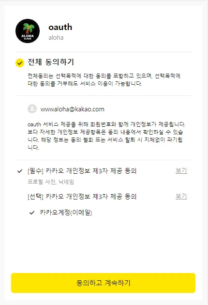 <meta name="title" content="카카오 로그인🔐 - ALOHA CLASS🌴">