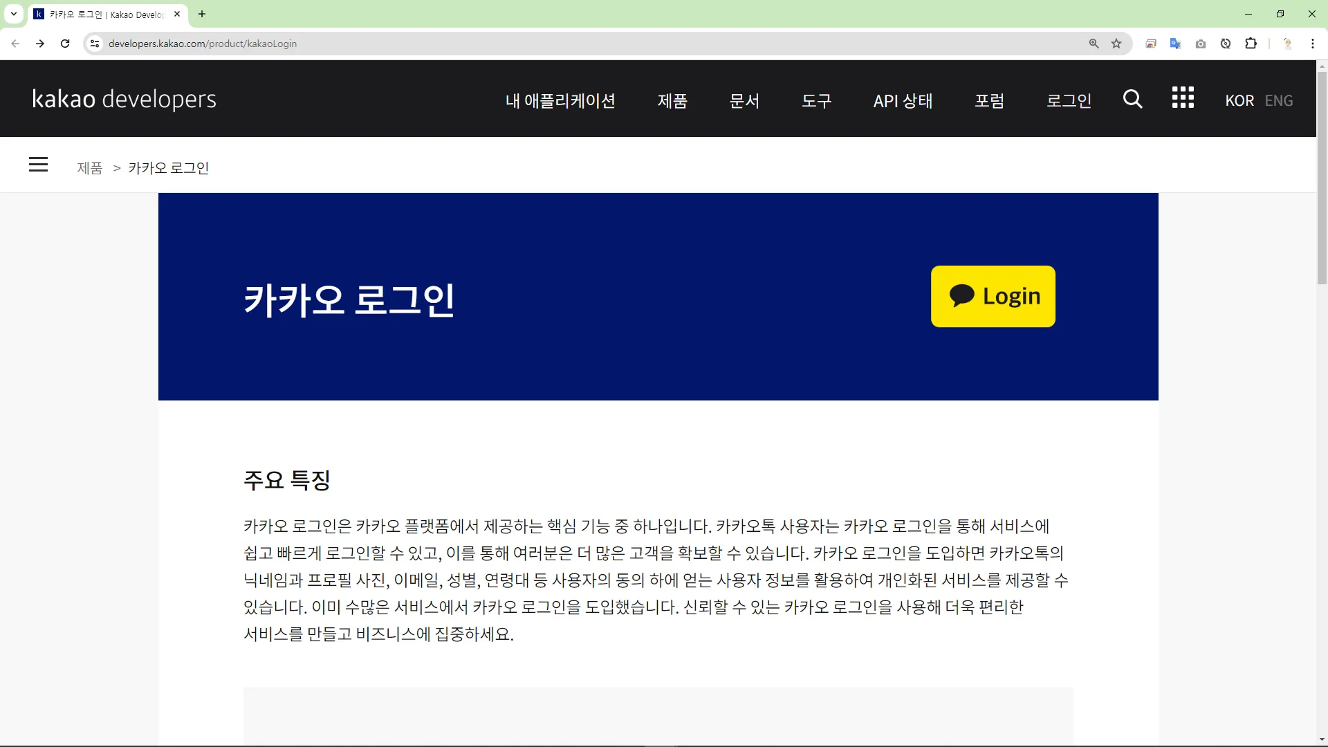 로그인: 카카오계정을 통한 빠르고 간편한 사용자 로그인 기능입니다.