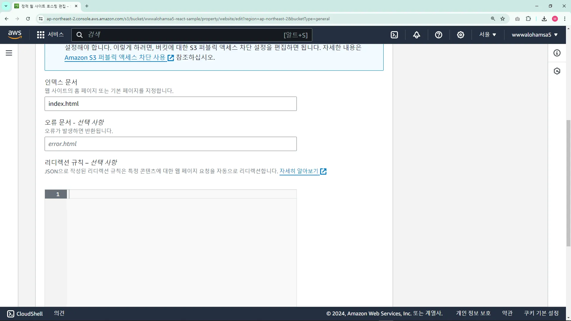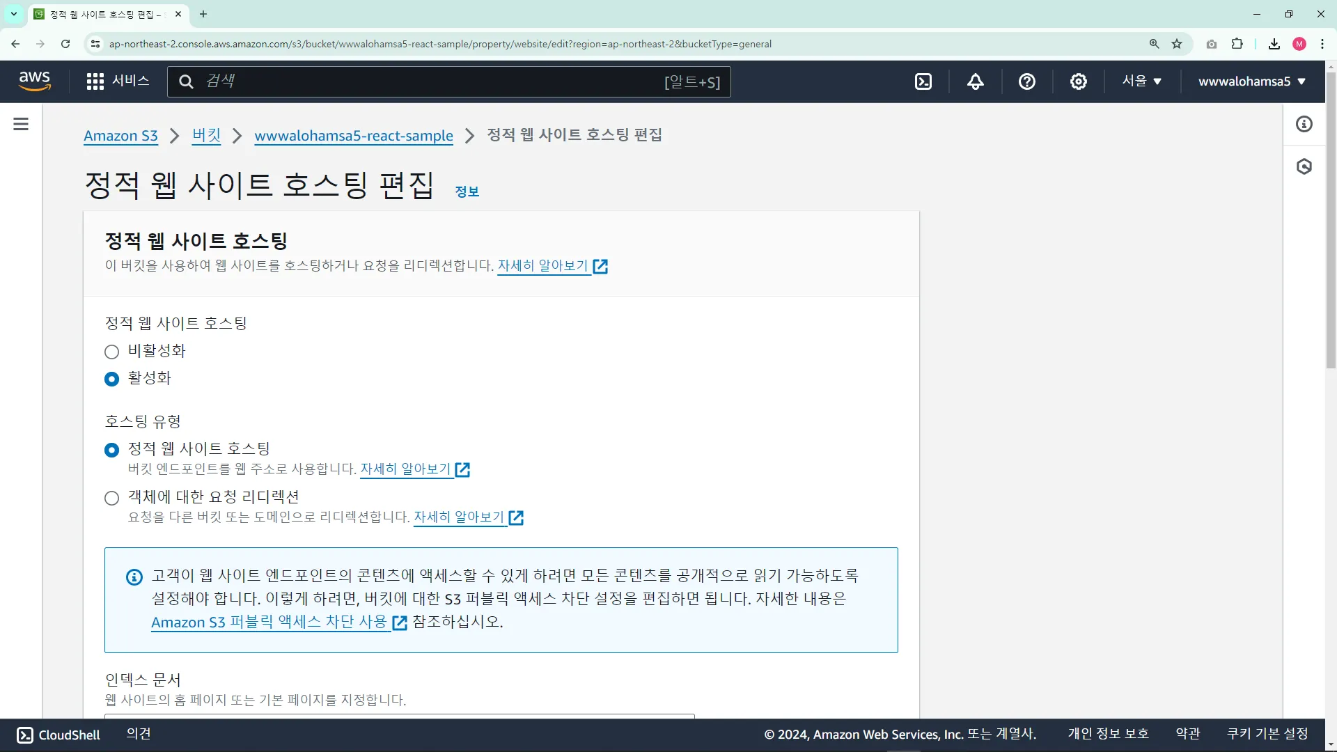 AWS S3์์ ์ ์ ์น์ฌ์ดํธ๋ฅผ ํธ์คํ