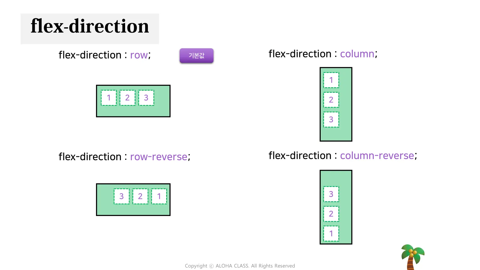 Flex Container 의 메인 축(row, column) 방향을 지정하는 속성