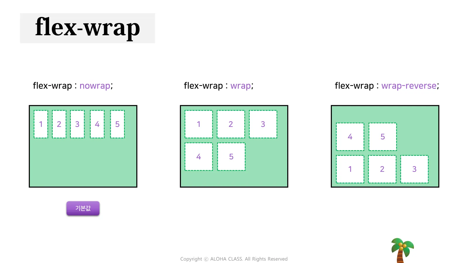 row-reverse | Item 을 row의 반대 축으로 표시 |